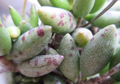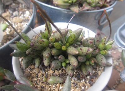 アドロミスクス属の緑の卵、赤い卵、マミラリスに花芽が出る季節です