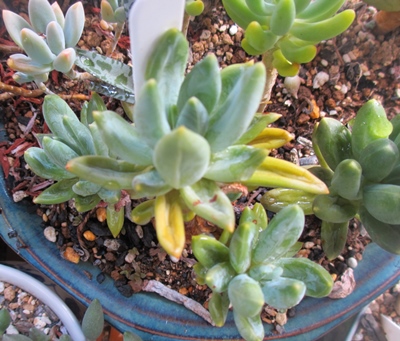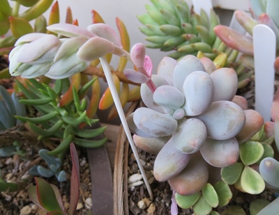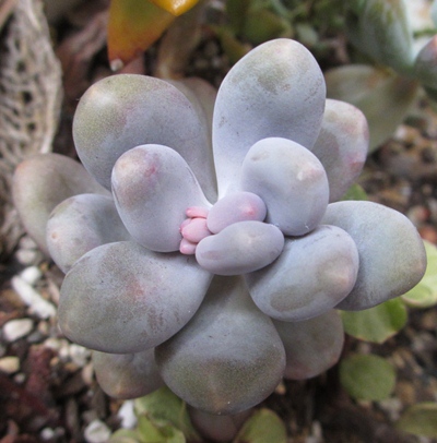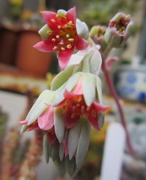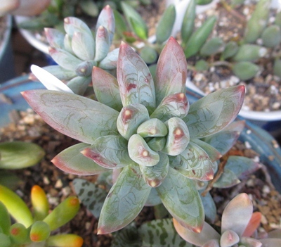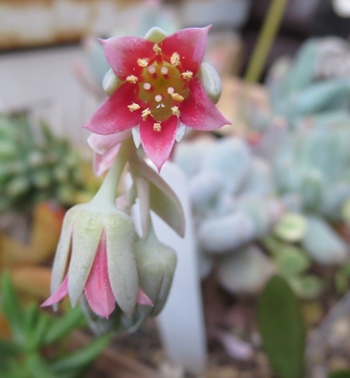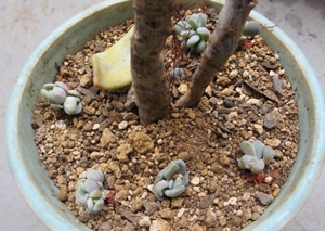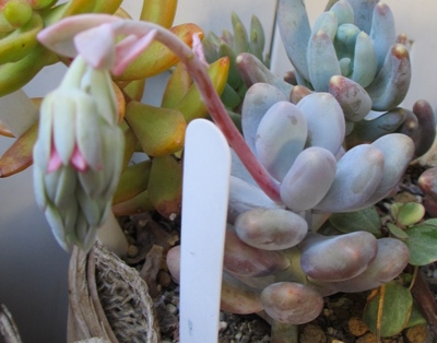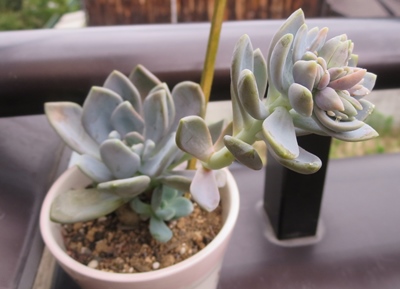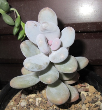 パキフィツム属の千代田の松とフーケリーに花芽があります
