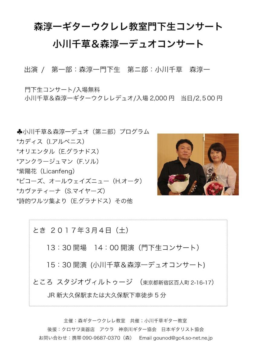 森淳一ギターウクレレ教室の門下生コンサートが無事に終わりました‼︎ 全員が良い演奏でした‼︎ ウクレレ弾き語り、ウクレレデュオ、ギターソロ、ギターデュオなどの内容でした 次回が楽しみです‼︎ お疲れ様でした ![]() ![]()