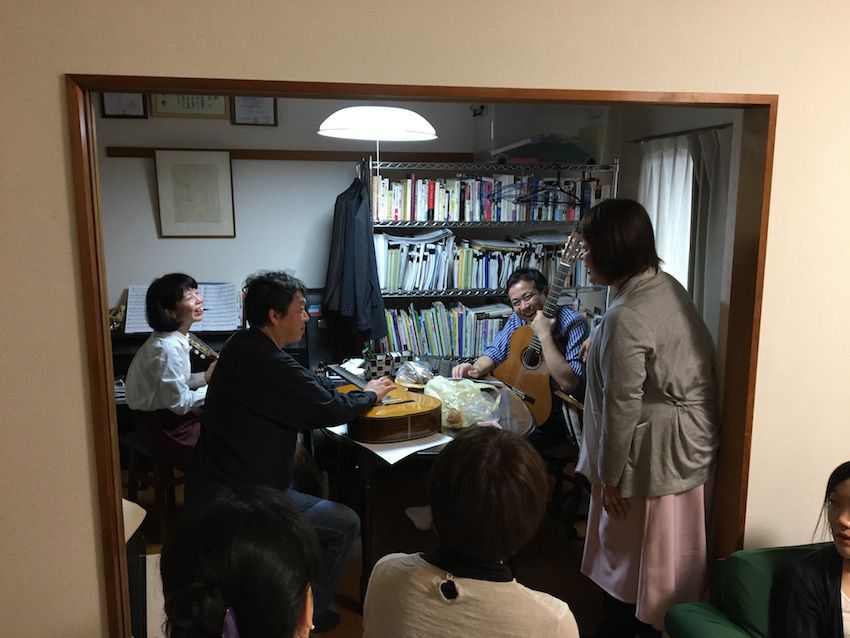 打ち上げの模様です。生徒さん、ゲストの小川千草さんも演奏しました。