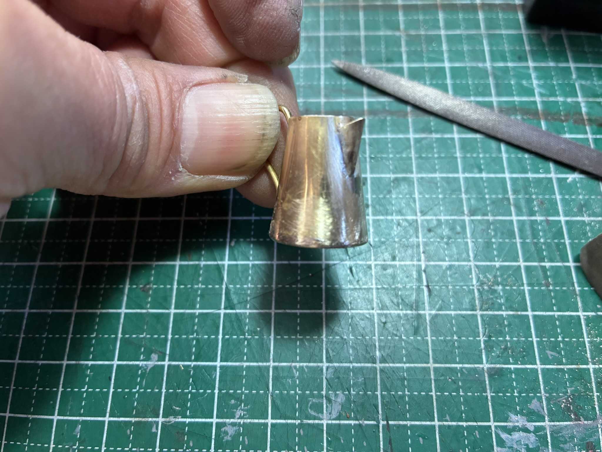 ポットの底をヤスリなどで、角を落としていきます。 ![]() 注ぎ口の周りのハンダを、削り落としました。