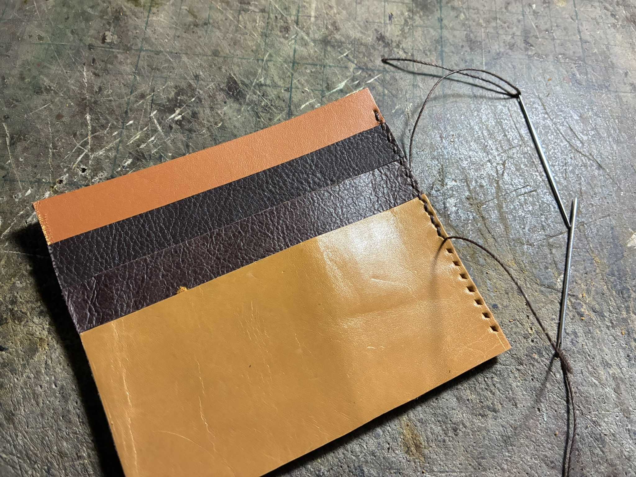 カード入れの内側の辺だけ、手縫い穴をあけました。
