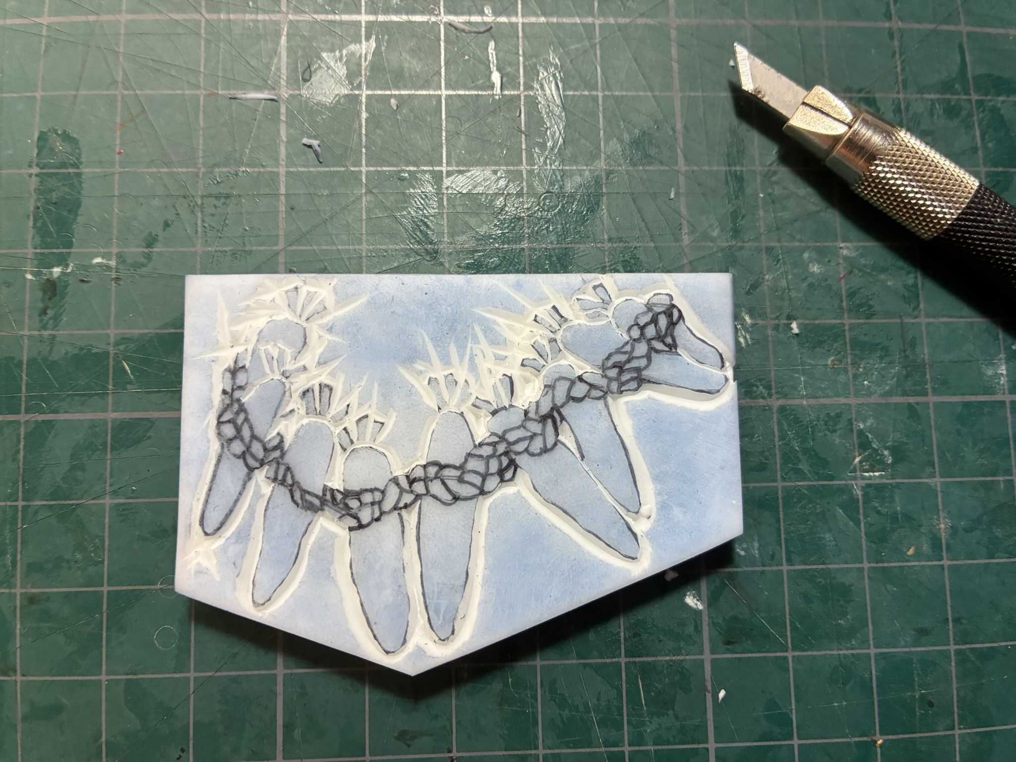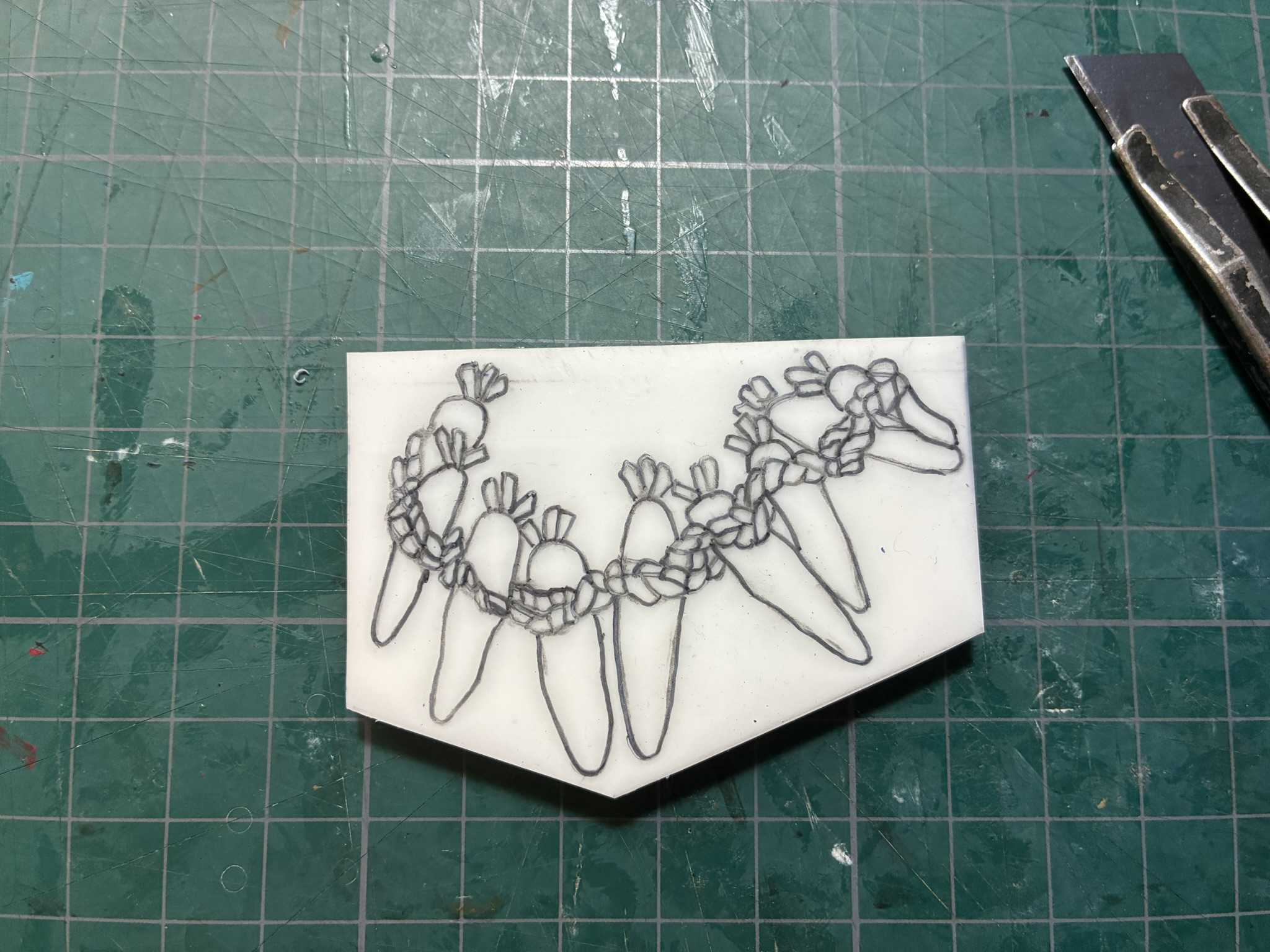 消しゴム板に下絵を写しました。