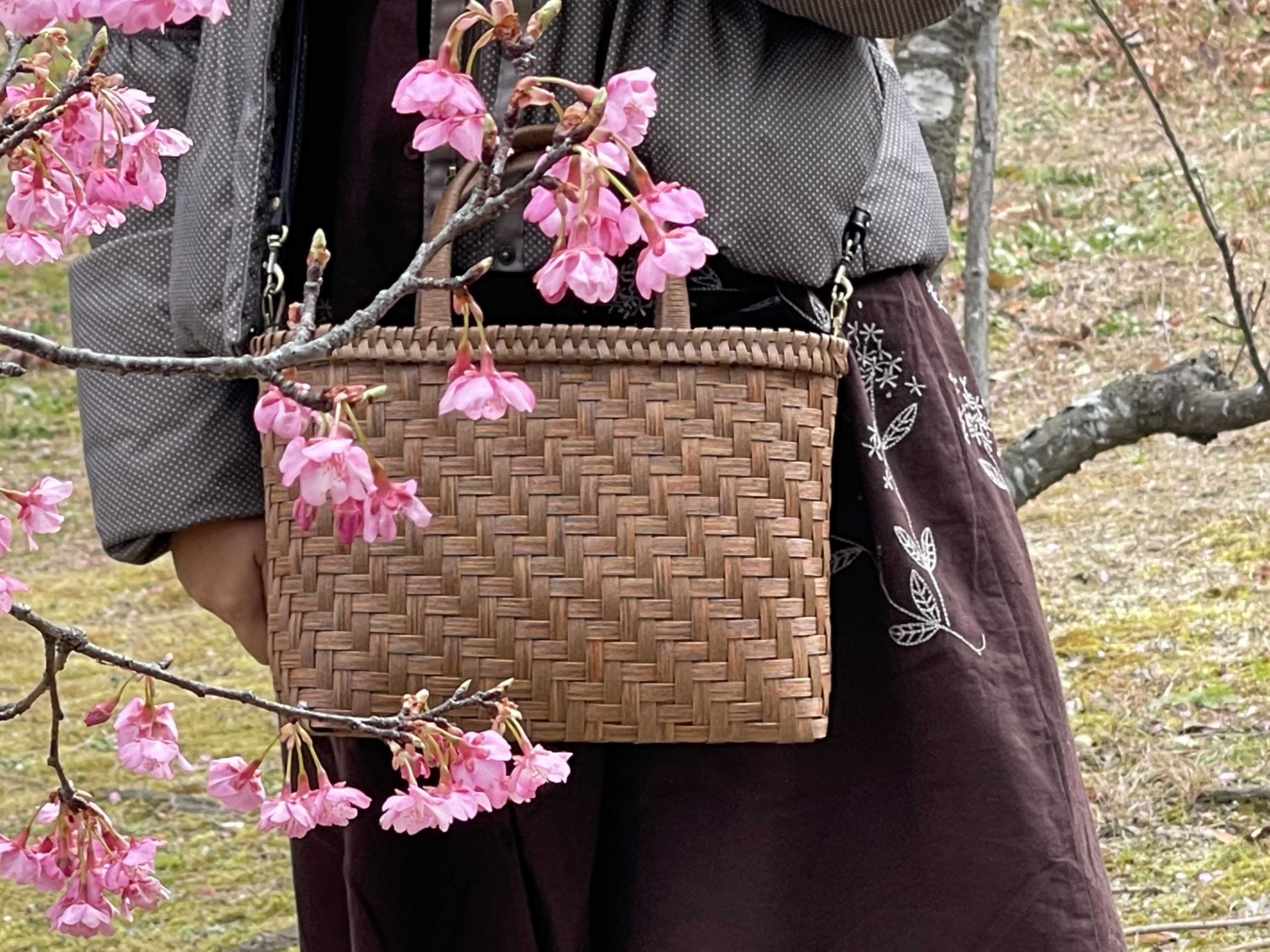今治市の野間馬ハイランドへ河津桜の開花情報を入手し日頃の運動不足を解消しょうとお出かけしてきました。今日のお出かけバッグは・・出来立てホヤホヤのかすり染めの2dayバッグです。ショルダーにも出来るようにサイドにDカンをつけました。一足早く春が来たような気分♪枝にはメジロが。三脚に大きな望遠レンズのカメラを据えた写真家の方々が並んで濃いピンクの桜とうぐいす色のメジロを撮影していました。ぽつぽつと家族連れやご夫婦・お友達と訪れてましたが密になることもなくゆっくりとお散歩できました。途中~みきゃんの遊具で遊んでみたり(笑)テヨン:「めちゃ楽しい~♪体幹鍛えられそうよ~」ゆら~ゆら~ゆら~旦那:「あほや。」山を登ったりお馬ちゃん達にに癒されたり楽しい休日を過ごしました。