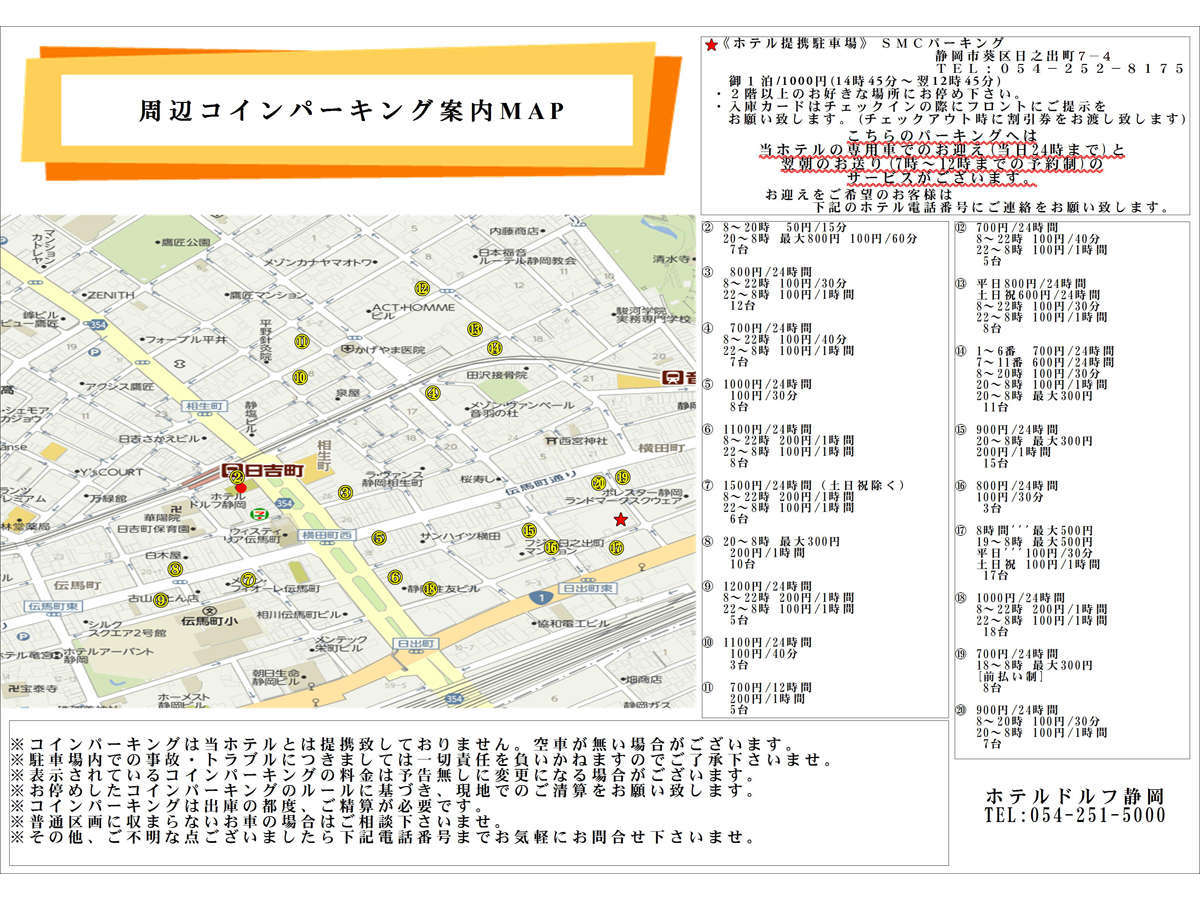 静鉄日吉町 駅徒歩30秒。ご来店時はホテルドルフ静岡フロントにお声がけください。
