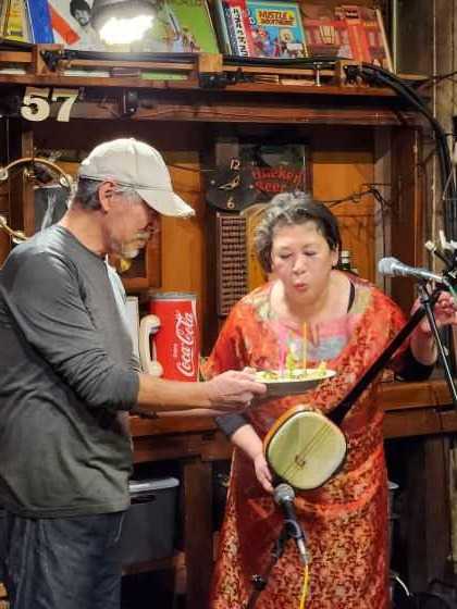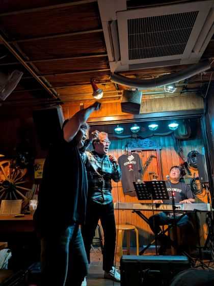 一昨日に舞鶴~広島出張から帰り、 本日また熊本出張に出るわけですが、 その合間の貴重な土曜日は、 昼こずみっく~夜高架伍拾七というライブダブルヘッダーでございました! 我ながらほんまようやるで、このおっさん(^^; というわけで、いつものようにランチは三品600万円×2♪ ![]() むむ、今回は優しいメッセージが! ![]() 「今日もジャマしに来てくれて」って、嫌味か?(^^; まずは、asagiri-Zのお二人から始まりはじまり~~♪ ![]() パンダ明石とZENRINさんのユニットです。 途中で巨大パンダにステージに引きずり上げられましたがな(^^; ![]() 続いて我らがバンボス一座~~♪ ![]() 今年はやけによくお見掛けしますが、 じつは来週は土日連荘で拝見する予定です(^O^) ![]() ![]() じつはここまではゲストで、 本日のメインキャストはHIKARUとZのお二人! ![]() 先日ハッピーローラでも拝見しましたが、 6年間活動をお休みしてた二人が復活するにあたって、 かつてお世話になったお店にお礼詣りをするという企画、 そのこずみっく版でございます(^O^) ![]() ステージを降りるとタチの悪いおっさんですが、 マイクを持つとしっとりとエエうた歌んですわ(^O^) ![]() で、次の高架のオープン時刻までまだちょっと間があるということで、 遠方から遥々来られた客人を連れて神戸ルミナリエへ♪ メリケンパークがメイン会場のようでしたが、 時間の都合もあり東遊園地だけにしときました。 まだ空は明るかったけど、綺麗に灯ってましたわ(^O^)v ![]() ![]() ルミナリエは今日(2/8)までですよ~~!(^O^) その後ちょうどいい頃合いに高架到着♪ この日は月に一度のサトコリン企画「沖縄DEナイト」でした♪ まずはOAとしてずんこさんが2曲ほど。 ![]() 続いて、サトコリンが師と仰ぐツマビキタケシ♪ ![]() 師と仰ぐ人に先にやらせるとはサトコリンもなかなか(^O^) ![]() 沖縄由来の楽曲限定ということで、 「童神」やらBEGINのカバーやらを歌ってくれて アタクシ的にはとっても得した感じ~~♪(^O^)v 二番手は主催サトコリンの登場~~♪ ![]() いつもは基本トリを務めるサトコリンなので、 もう一人のゲストが先にやるかな?と思いましたが、 今回はさすがにそれは出来なかったようです(^O^) ![]() 今回でこの企画がまる三周年とのことで、マスターからのサプライズ! ![]() 何に蠟燭が立てられてるのかよく見えませんでしたが(^^; そしてトリとして登場したのが◎ターシ~~♪\(^o^)/ ![]() プロですからなぁ、 さすがにサトコリンがトリを務めるわけにはいきませんわな(^O^) 歌う前に珍しくオリオンビールなんて飲んでたからか、 いつもよりかなりテンション高めな◎ターシでした(^O^) ![]() 終盤にはサトコリンとビッキーをそれぞれ呼び込んでのコラボも♪ ![]() ![]() サトコリンの企画を盛り上げようとする気持ちが客席にも届き、 大盛り上がりのライブとなりました! やっぱり、おこの辺り、プロですよねぇ~~♪(^O^)v いつものターシのライブではあまり三板を叩くことは無いのですが、 この日は弟子とともにたっぷりと叩かせていただきましたわ(^O^)v ![]() いや~、どんどん上手になるね~~♪(^O^)v と言うわけで、こずみっくでも高架でも暴れすぎてちとお疲れですが、 もうちょっとしたら水俣目指して出発します。 今回は「さくら」なので姫路駅から乗車の予定。 雪の影響で東海道新幹線が遅れてるようですが、 新大阪発だから大丈夫かな?知らんけど(^^; なので、姫路おでんで一杯やってから乗車します~~♪(^O^)v お気に入りの記事を「いいね!」で応援しよう