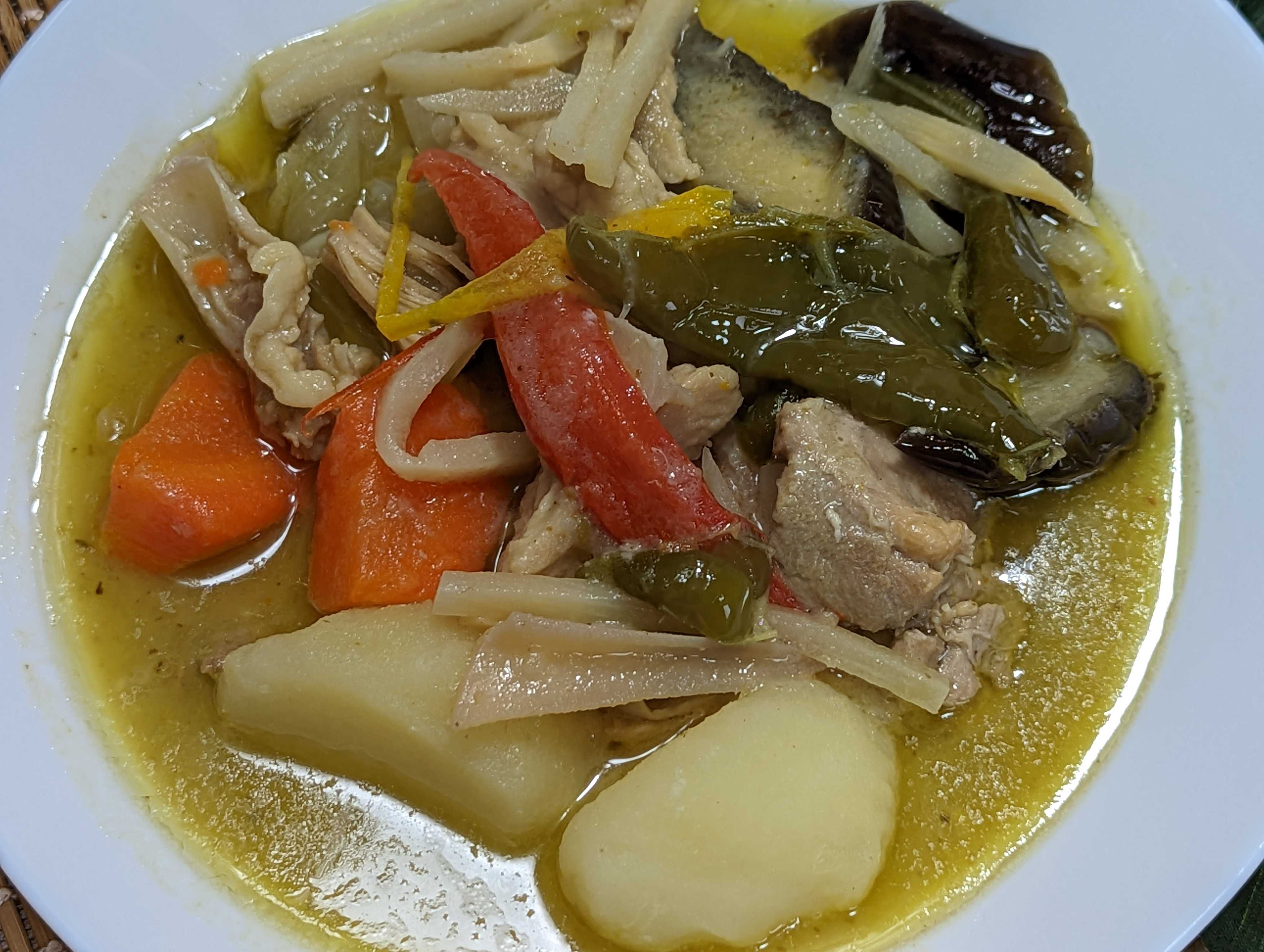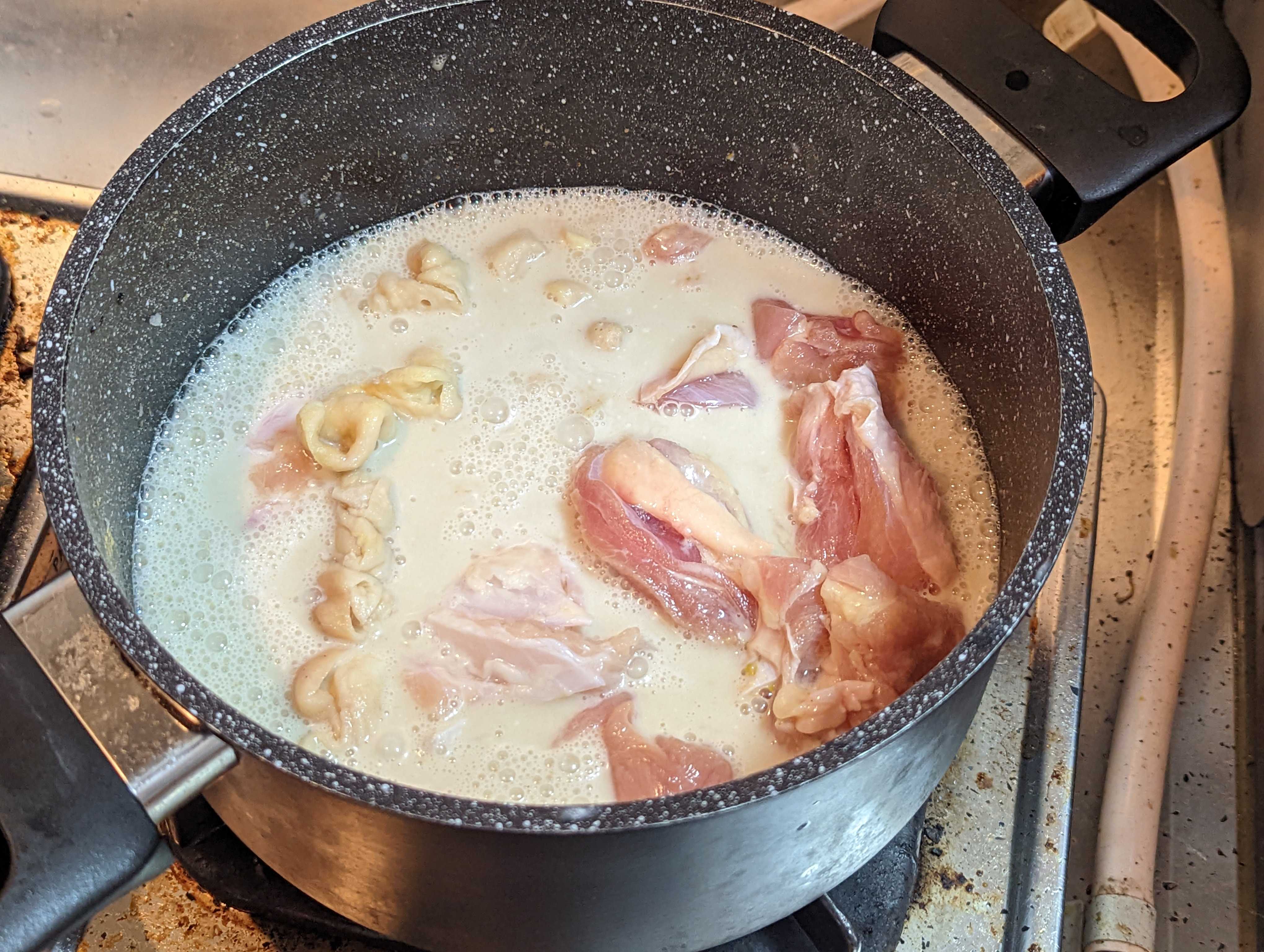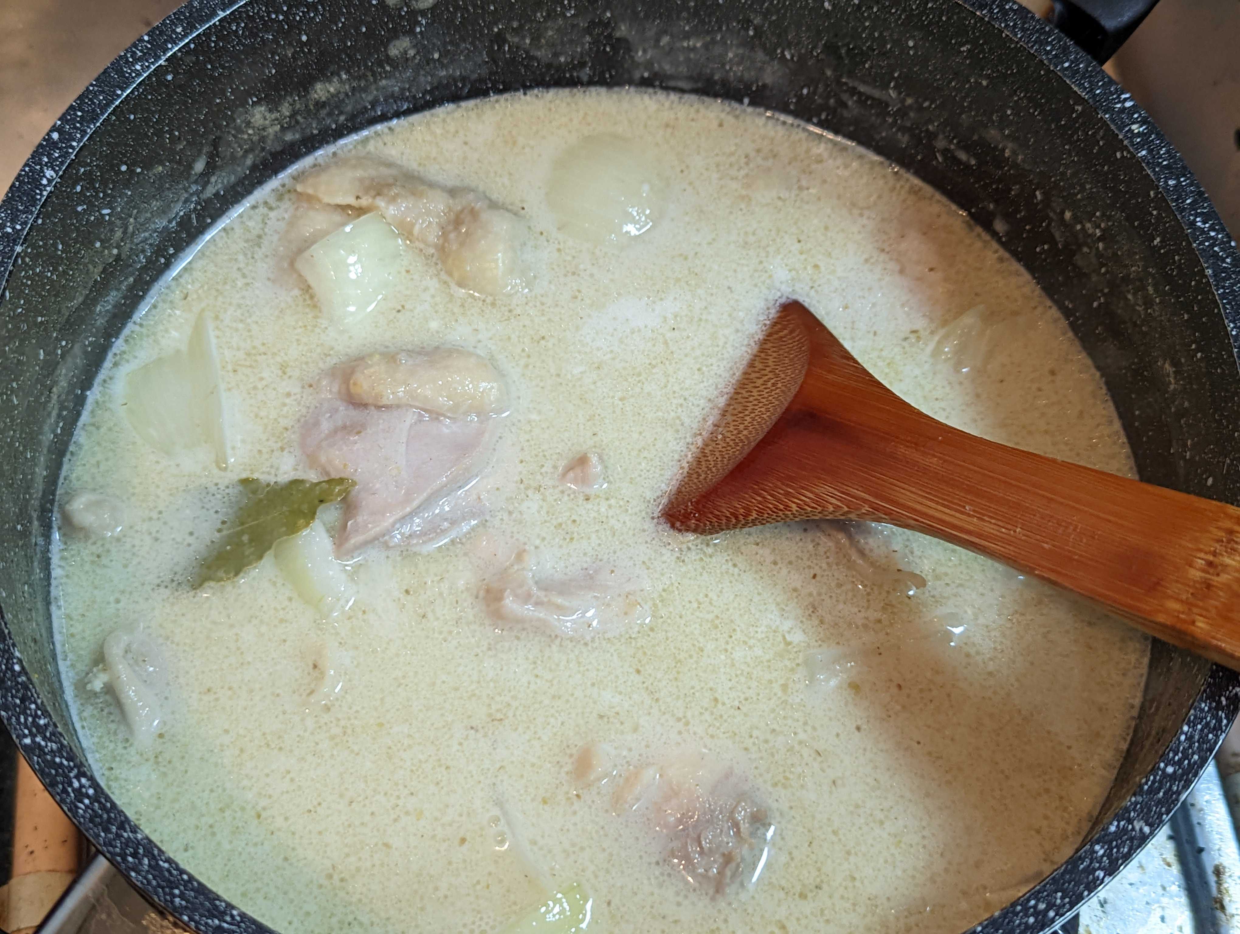久しぶりに辛い食事をと思って グリーンカレー🍛作った🤩 ![]() ガーリックカンパーニュと一緒に🥰 ![]() 市販のグリーンカレーペーストとココナッツミルクで作っていきます。 ![]() たっぷりの具材で😊 筍、なす、ピーマン、パプリカ、玉葱、じゃがいもと人参は下茹で済😁 ![]() 今回はココナッツミルクのみで煮ていきます。 グリーンカレーペーストを溶かして、🐔もも肉、🐔ヤゲン軟骨、🐔皮があったので、全部投入😤 ![]() ローリエ🌿を入れて、じっくりコトコト☺️ ![]() 下茹野菜🥕🥔以外を投入😁 この辺で味を決めていきます😤 グリーンカレーペーストしか入っていないので、ただ辛いスープなので😅 鶏ガラとはまぐりだしで濃くを ナンプラーで香り付け、ライムジュース、塩コショウ、唐辛子、で味を決めて🫡 ![]() 🥕🥔投入で温まったら完成です☺️ ![]() 仕上げに蜂蜜🍯でまろやかな辛さにしてます🥰 ※辛いの苦手な方なので🤣 ![]() ガーリックカンパーニュは、マーガリンに刻みニンニクを混ぜて焼いただけ トーストして、ガーリックマーガリンを塗って、更に焼くと美味しいですよ♥ ![]() おまけのサラダ🥗もちょいタイ🇹🇭風 ライムジュース、ナンプラー、唐辛子、塩コショウ、EXオリーブオイルでドレッシングを作ってます😋 お気に入りの記事を「いいね!」で応援しよう