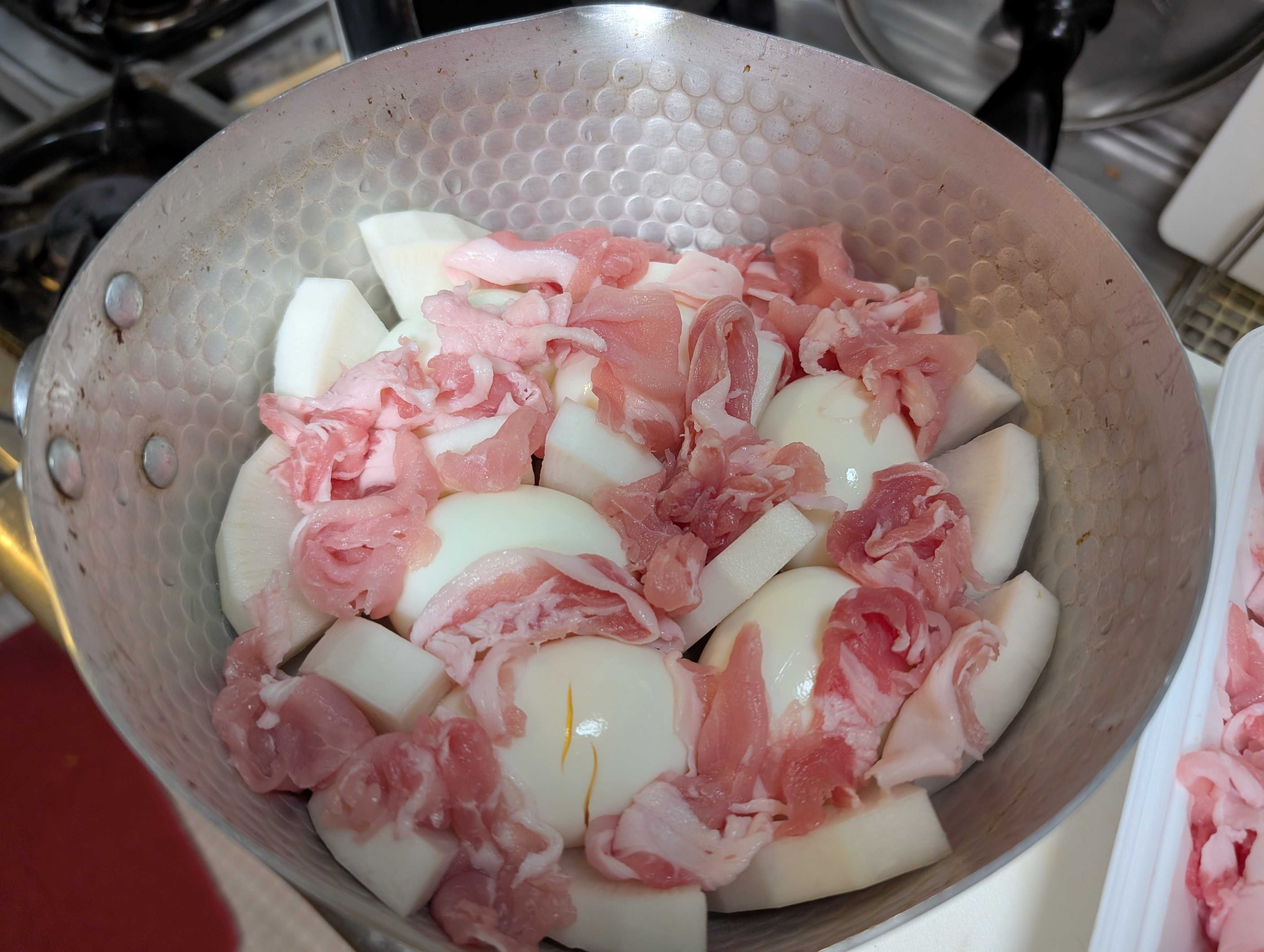 夏の想い出🎐🤔からの煮物🤪 ものすごく中途半端な残大根😭 ちょっと時間経ってるから生はな〜、、、 丁度お買物行ってて、プリン🍮作る用に購入卵 いっぱいあるから煮卵良いな〜 これが夏の想い出🎐、、、今年の夏は暑過ぎて素麺、蕎麦etc 普段使わないめんつゆに頼っていて😅、、、で、、、使っちゃおう案件ですよ〜 お鍋に大根、ゆで卵、豚肉セット お水、お酒、めんつゆ、唐辛子🌶️で着火🔥 アクがドバっと出てくるのですくいましょう 30分程煮込んで一度クールダウン❄️ 味をしみしみに🤗 数時間クールダウン❄️させてもう一度煮込んでいきます💪 濃そーに見えてサッパリお出し 夏の想い出🎐煮物でした~😝