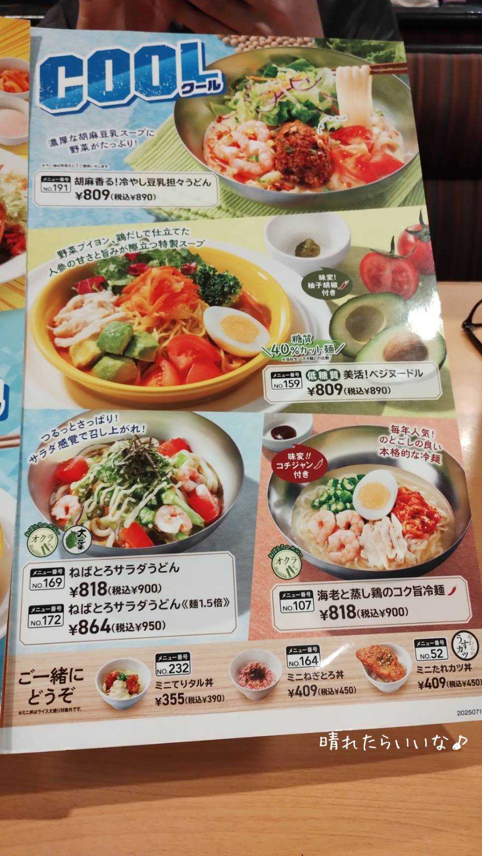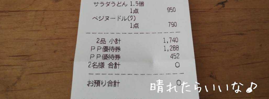 こんな日は 私は夕食なくてもイイんですが 当たり前ですが 主人はお腹が減るのです ガストへ レッツラゴー まだ一度も食べたことがなくて 気になっている麺が 1つあって サッパリしたものなら食べられそう・・ と言うことでお店が決まりました ![]() 4種類の中で 注文したことがないのは ![]() 美活!ベジヌードル 糖質40%カット麺使用で 女子が好きそうなお品です 私は一日の食事回数が少ないので 糖質カットとか気にしないですけどね ![]() 主人は ねばとろサラダうどん(1.5倍) 麺と言ったら 必ずこれを食べてます 味はもちろん 麺が1.5倍あるのは 男性には嬉しいですよね~ ![]() そろったところで いただきま~す 麺は以前ラーメン屋さんで食べた 糖質カット麺と食感が同じ 言われたらわかる程度の違いです 人参のスープがなかなか美味 コレは家では作れない味で 外食した甲斐があるわね 美味しいです 4種類とも制覇しましたが~ 結構これ好きかも ![]() 夏はカレーも推しています ![]() ゴーゴーカレー これ トッピングでカスタマイズできるようになった と ネットニュースで見ましたが ココイチのお客さんを 奪いに行く戦略でしょうかね 基本的に カレーって ご飯を作りたくない日の手抜きメニュー (我が家はレトルトカレーなので) と言うことで 外食で食べるなら スープカレーなんですが たまたま後ろの席に座ったカップルの彼氏の方が ゴーゴーカレー食べてまして その香りがプーんと コチラまで漂ってきたのですが スパイシーな香りで メチャクチャそそられる匂いでした 主人の鼻にも届いていたようで 次は ゴーゴーカレーが食べてみたい!! (夫婦の意見が一致) そのうちまた 食べに行くと思います~ ![]() 優待券でお支払い ごちそうさまでした お気に入りの記事を「いいね!」で応援しよう