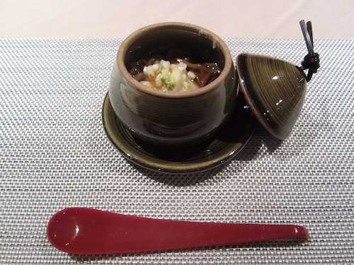 ザ・ホテル・オブセの2025年9月14日(日)のデイナーです。 前菜 変わり八寸 ![]() 最初にこの長いお皿がドーンと出て来た段階で感動しました。もうこれだけでコース料理のよう。 一番左は平茸と春菊の和物、その隣の小鉢がアワビです。これがすごく柔らかくて最高。 甘いさつまいもを挟んで中央のわらに乗ってるのが雛鳥のグリルと旬の秋刀魚の焼き物、その右の小鉢が鞍掛豆の天ぷら、セロリのミニサラダがあって、一番右はプルーンのビネガー仕立てだそうです。 冷えたビールはマストです。 ![]() 冷菜 信州サーモンの重ね盛りセルクル 煎り酒仕立て ![]() 煎り酒仕立て(いりざけじたて)とは、日本酒、梅干し、鰹節などを煮詰めて作る万能調味料『煎り酒』を使用する料理法のこと。 信州サーモンだけでなく、イワナのたまごが入ってました。 温菜 そばがき〜なめこの餡かけ ![]() 祖父がむかし作ってくれたグレイでざらざら食感の蕎麦がきをイメージしてたんですが、全くの別物でしたね。お餅のような上品な見た目で、口触りもなめらかでした。 主菜 信州プレミアム牛のロースト 信州ワインソースと野沢菜ソルト ![]() とろけるようなローストビーフ、甘いワインソースもいいですが、塩とレモンがよく合いました。大将はここで赤ワイン注文。 お口直し信濃町ジェラートとうもろこし ![]() 『これって、お砂糖入れてますよね。』と思わず聞いてしまいましたが、びっくりするほど甘いんです。素材のみの甘さだそうです。とうもろこし本体をガリガリ食べてみたいです。 お食事 特製栗おこわ ![]() さすが栗の名産地だけあって、粒揃いの宝石のような栗がおこわに乗ってました。もうお腹いっぱいすぎるけど絶対食べる! 手打ちそば 戸隠産石臼挽きそば粉使用 ![]() 戸隠そばも有名ですから、何が何でも食べます。十割ではなく二八だそうですが、完璧な茹で加減で締めにピッタリでした。 デザート 栗と抹茶のティラミス ![]() ほんの少しモンブランを期待しましたが、ティラミスも最高。 コーヒーは部屋に帰ってドリップポッドで入れ立てをゆっくりいただきました。 (つづく) <関連記事> 小布施(その1)The Hotel Obuse お気に入りの記事を「いいね!」で応援しよう