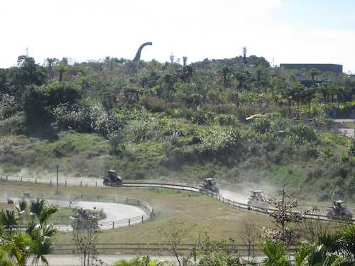 <ジャングリアで恐竜探し>次のアトラクションはファインディング・ダイナソーズです。迷子になった赤ちゃん恐竜を探してジャングルの中を探検します。こちらも約50分待ちでした。日傘借りといてよかったです。眩しい日差し。探検隊はヘルメットが支給され、コードネームを聞かれます。答えはいつも『イエス、サー!』隊長はジャングルのミニ恐竜たちと意思疎通ができるようで、お目当ての恐竜の赤ちゃんのことをそこら辺にいる恐竜たちに聞いていました。ちょっと危険な吊り橋あり。体力勝負のトロッコ漕ぎも隊員たちの任務です。古い鉱山の岩に囲まれた洞窟の中には...。無事生還した隊員には、記念のステッカーが授与されました。探検に参加したのはほとんどが大人たちでしたが、みんな大声で叫んでましたよ。『YES, Sir!』もちろん私も。隊長は女性でしたので本当はサーじゃないのかもね。(つづく)