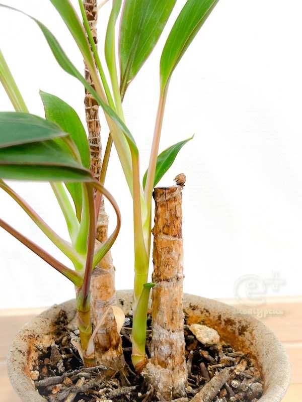 コルジリネの取り木の、現在の状況について。 4月に切り離した その木も、 取り木元のほうの木も、どちらも元気に過ごしている! まずは切り離した方の木。 ![]() 無事に根を張って独り立ちできたと見ていいだろう。 スクスクと新しい葉っぱを伸ばしてきている。 取り木「もと」の、本体は、こちら ![]() これは枯れたりする心配はあまりなかったけど 切断した下側から新芽が出てきてくれているのがうれしい点。 アップ! ![]() 矢印の先、こんなに元気よくニョキーっと! ![]() 欲を言えば、もうひとつぐらい新しい芽が出てきてほしいところだけど。 (1本の木が二又になるようなイメージ.) まあでもゼータクは言わない(笑) というわけで 元々1つだった木、無事に取り木で増やせたということで。 今回の取り木プロジェクト、成功ー パチパチパチ 今度は これらを1つの鉢にまとめて寄せ植えにしたい考え。 時期を見て、やらなきゃ! お気に入りの記事を「いいね!」で応援しよう
