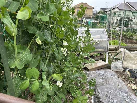 スナップエンドウの生長とともに脇芽が出て蔓が膨らんでいます。このままでは強風が吹い…
