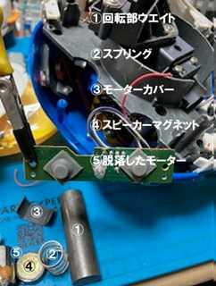◆訪問場所;富士市 おもちゃ図書館 ◆治療したおもちゃ;おいかけて コロコロボール ❤修理番号:558❤ ![]() ◆故障内容の確認 ①動かない。 ②乾電池ケース蓋の爪が折れてしまった。 ◆治療内容 ①分解を進めると中から5つの部品が出てきました。 ・回転部ウエイト ・スプリング ・モーターカバー ・スピーカーのマグネット ・脱落したモーター ![]() ②回転部ウエイトは固定場所にカバーを作成して 固定しました。 ![]() ③スプリングは本体の指定位置にホットメルトで 固定しました。 ![]() ④モーターは分解点検して取り付けました。 ・ブラシが一部折れていたので、手持ちの部品と 交換しました。 ・組付け後慣らし運転を5分程実施しました。 ![]() ![]() ⑤モーターカバーはプラリペア(黒色)で固定し、 更にインシュロックでモーターを固定しました。 ![]() ⑥スピーカー用マグネットは、 コイルが傷んでいない様なので、瞬間接着剤と ホットメルトで固定しました。 ・スピーカーチェッカーで確認すると問題なく 音が出ました。 ![]() ⑦電池ケース蓋の爪はステンレス線(Φ0.3㎜)で 固定後、プラリペアで固定しました。 ![]() ![]() ⑧断線個所も再ハンダ付けして動作を確認すると 問題なく動作したので、最終組付けをして床で動作を 確認すると、少し動いて止まってしまいます。 ・何回か動きを確認しているとスイッチにガタが有り、 指で触ると動いたり、止まったりします。 ⑨再度分解してスライドスイッチを確認すると 基板に対して1.0㎜程上下します。 ・原因はハンダ付けが雑な事と基板に1.0㎜程隙間が 有り、微妙にハンダに割れが発生していました。 ➉スライドスイッチを基板に再ハンダを行い、 隙間をホットメルトで埋めました。 ![]() ※これで治療は完了です。 ◆返却予定日;2026年2月22日(第4日曜日) お気に入りの記事を「いいね!」で応援しよう