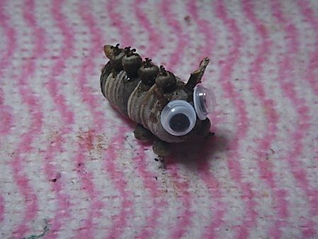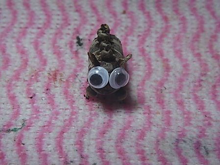 ◆おもちゃ病院に来院されたお子さんへの「プレゼント」を作る ◆殻斗(どんぐりのから)を使った、小さめの「可愛い、イモムシ」 を作ってみました。 ◆作り方 ①先ずは、下準備をします、大きめの殻斗(かくと)を5個と少し小さい物を 1個用意します。 ・大きめの殻斗から一番大きい殻斗を頭用に、小さい殻斗をお尻用にします。 ・Φ6㎜の動眼(動く目)を2個用意します。(100均で売っています) ・スポンジを5㎜角程度に切った物を6個作ります。(サイズは気にしない!) ②一番左側の殻斗(頭用)の内側に、瞬間接着剤(3M 耐衝撃用 黒い容器)を 塗り、スポンジを付けます。(綿棒で軽く押さえてやるとキレイに付きます) ・同じ様に、最後のお尻用の殻斗までスポンジを付けます。 ③左から2番目の殻斗の外側に、接着剤を付けて、一番左の殻斗のスポンジに 付けます、同じ様に5番目の殻斗まで付けたら、最後は一番右の殻斗(お尻用) 内側のスポンジと5番目殻斗のスポンジを接着して、胴体は出来上がりです。 ![]() ![]() ④角(つの)と目玉の取付を行います。 ・葉っぱの付け根部分を10㎜ほどの長さで切って、頭に付けます。 ・背中のトゲは堅果の赤ちゃんです。(写真の赤○内を見て下さい!) ![]() ![]() ⑤最後に、足を4つ付けて終わりです。 ・足も、堅果の赤ちゃんを使っています。 ![]() ![]() ![]() ◆6月16日(日曜日)開院予定の「おもちゃ病院」に持ってい行きます。 お気に入りの記事を「いいね!」で応援しよう