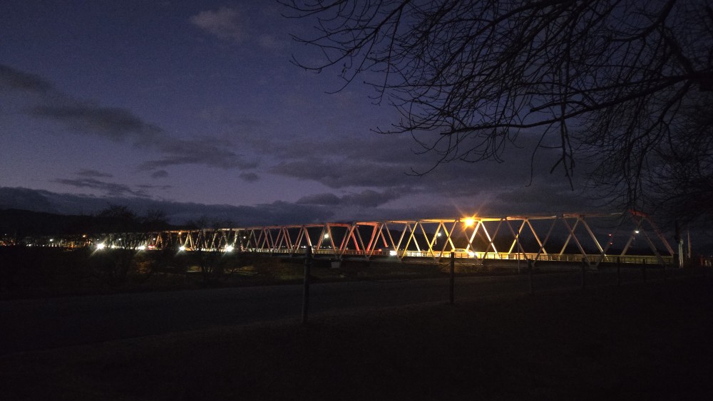 小布施は栗、及びそれを加工した食品で有名です。 小布施橋の近くには上信越自動車道の小布施PAがあり、ここがハイウェイオアシスになっています。 休日等を中心にそこそこ賑わう場所。 ただ小布施町の中心部からは離れていますので中心部に行く場合は車で行くことになります。 中心部は道も狭く駐車場も少なく渋滞するので行かれる場合はなるべく早めに行かれることをおすすめします。 【ふるさと納税】竹風堂 どら焼山 栗粒あん 10個入 [竹風堂] 栗 粒 あん 餡 和菓子 スイーツ どらやき 贈答 ギフト 秋 小布施 長野県限定 秋 おやつ お取り寄せ ご当地 【ふるさと納税】栗の木テラスのモンブラン 4個入り [桜井甘精堂]スイーツ 菓子 栗 信州 長野県 冷凍 ご当地スイーツ 数量限定 【2025年1月16日~3月末日発送】 【ふるさと納税】 栗アイスクリーム 100ml 8個 [小布施堂] アイスクリーム アイス スイーツ お取り寄せ 贈り物 カップアイス ご当地 長野 信州 小布施の有名なお菓子店と言えばこの辺りでしょうか? どこも有名店でありますのでそもそも小布施に行かなくても長野駅前の地下街等で簡単に商品が手に入ります。 個人的にオススメなのは竹風堂の栗おこわ。 もし小布施に行かれる場合は買って食べて見てね。美味しいから。 話がずれてしまいましたらちょうど時間も夜を回ってしまい暗くなりました。 その間に橋を渡って向かいのお肉屋さんに行って来たのですが… いや~、小布施橋は高所恐怖症の人は行かない方が身のためですね。 こちらの橋古い橋なのですが作りが古いというよりも簡素という感じで歩行者側があまりに貧弱。 よく怖い橋等で足元が見えてしまう橋がありますがさすがに歩行する部分は舗装されているのですが その左右が見えてしまっているのでもろに高さを感じます。 ですのでわんこ連れで行かれたりしないでね。 行く場合はしっかりとカート等に乗せて安全を確保してください。 まあそれでも怖いものは怖いのですけどね。