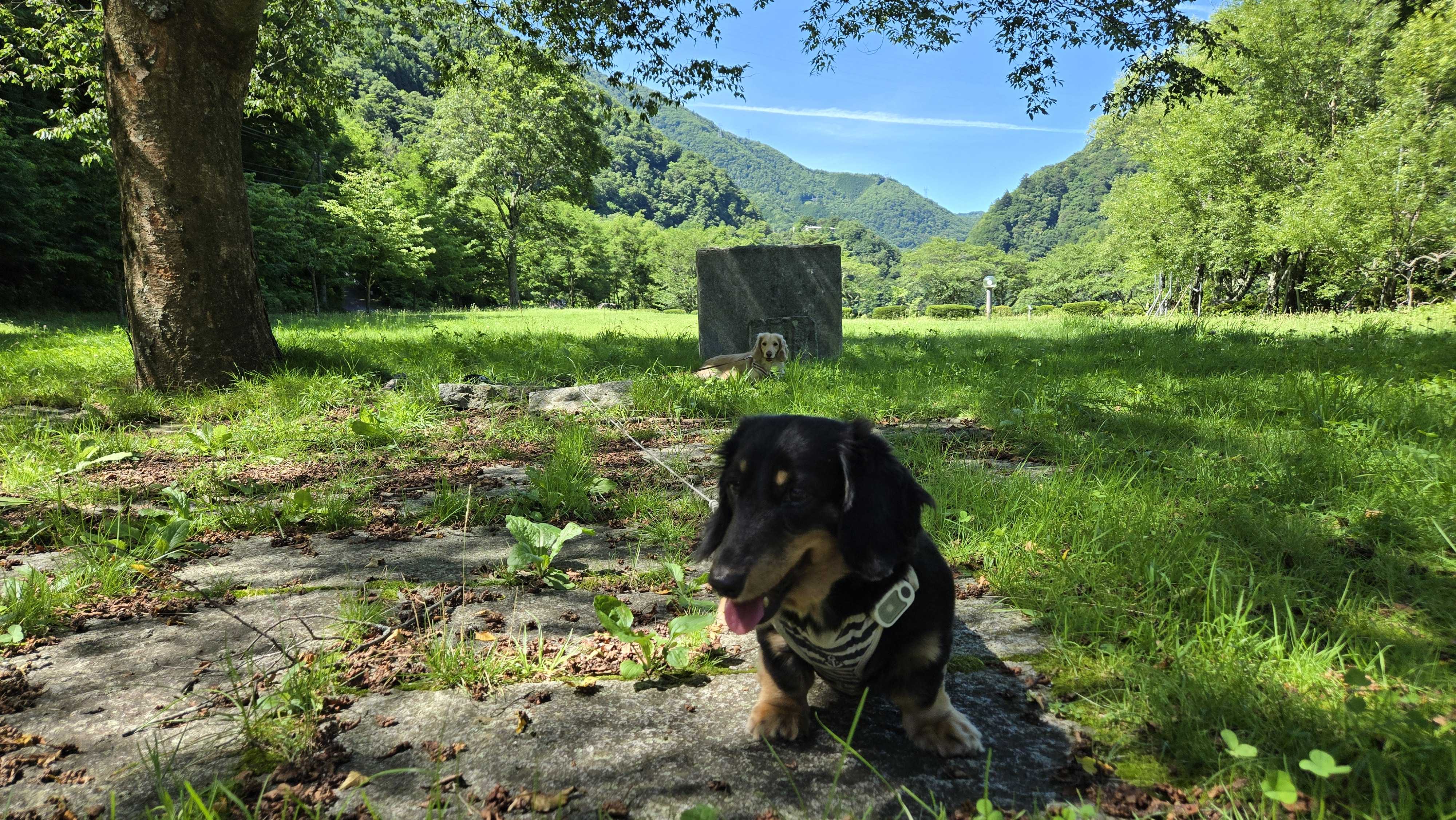 ダックスにとってはいい運動…なのですが時間がお昼、季節は夏となると厳しい状況に早変わり。