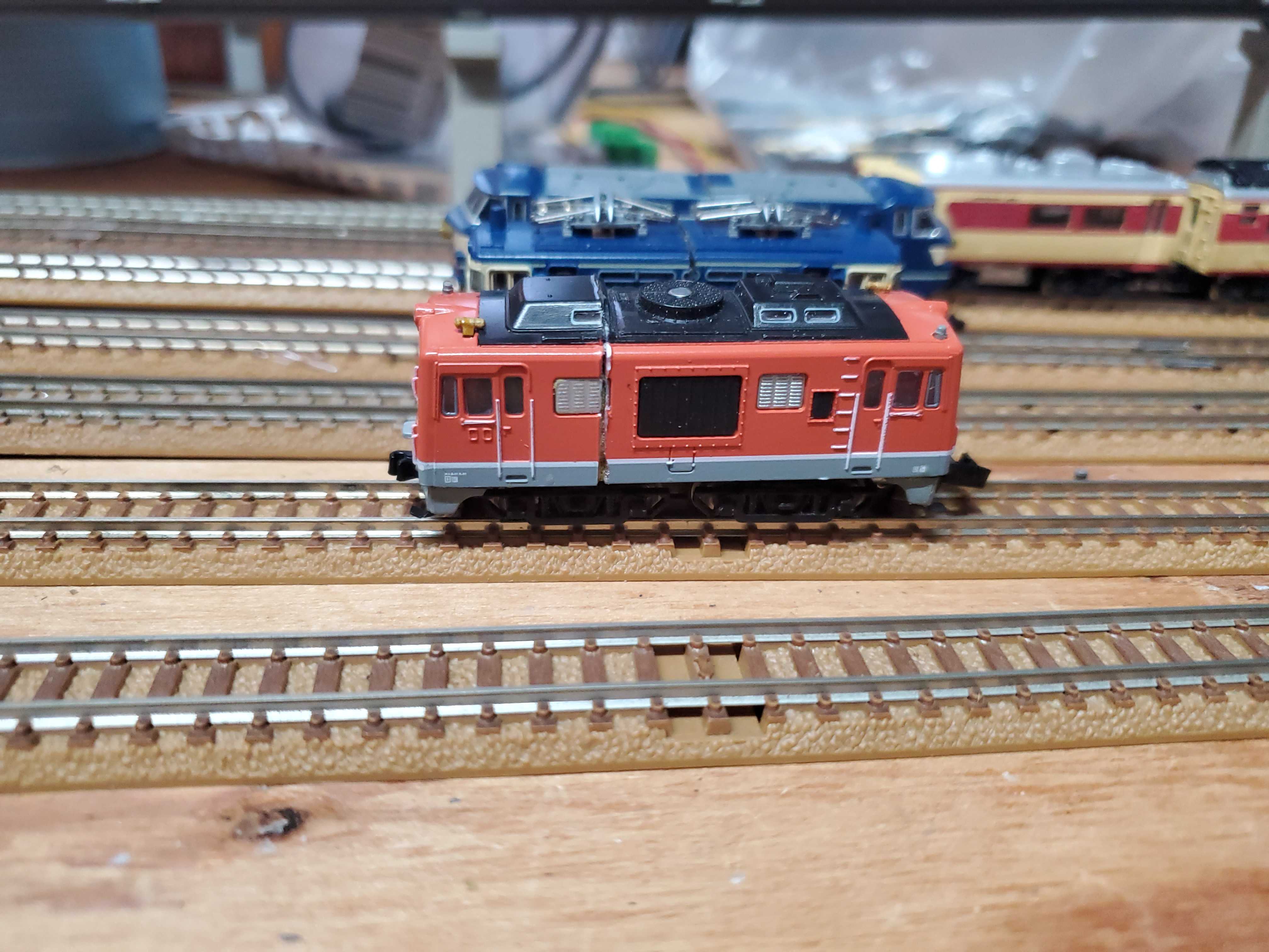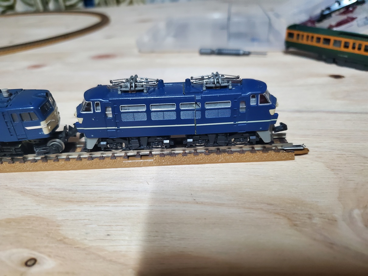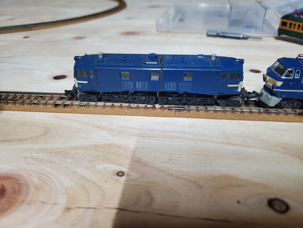 ※なんでBトレなん? 倉敷近辺の山陽本線と新幹線は直線オンリーってイメージがあるかもしれません。遠くから高架を走る新幹線は結構のんびり走ってるっぽく見えるんです。そんな訳で1mチョイの直線でものんびり感出すならデフォルメ必須かなーと思う BトレのN化での課題 Nゲージ化で課題だなぁ・・・ と思う事です もうKATO動力車と心中したらどうですか? 中古動力購入等イロイロ試しましたが、結論は「KATOのBトレ動力最高!」です。何はともあれ「安い!」という事で「新品買えよオラ!」という感じになりました。わざわざ程度不明の中古を仕入れるのがバカバカしい状況だと感じました。※自分が劣化させた機体ならメンテしやすいですからね~~~(多分ネ) KATO動力車の無改造だと4両編成が精いっぱい オモリを追加したところで悩ましい状態です。牽引能力と給電能力が悪い為に坂のある路線が考えられないです。時々調子良く登る奴がありますが「何か理由がアル?」と考えています。ワカランけどね よくわからんけど作ったショーティー達 EF58/EF57の3軸台車って良くない? 先日3軸仕様のEF65がソコソコ上手く動いてご満悦でした。ソコで気づいたのですが「EF58って3軸で台車構成」って事です。わざわざEF65で2+1改造しなくてもEF58/57の1台車を使って1車両作っちまったら・・・・ て感じ DE10はバンダイ動力です 不動品の動力車が紛れておりショーティー化しました。僕は岡山機関庫DE10 1561の引退キッカケでNゲージを始めたのですが・・ やっとBトレDE10を手に入れました。 この色でスノープラウ無しが欲しい ![]() ![]() 手持ちのバンダイ動力のアチコチを削って無理やりハメこみました。車両が軽いので鉛玉を使って重量UP予定です。 EF65をブッたぎりました。(3軸仕様) 4軸仕様がイマイチだったので別途内臓モータを用意して作りました。 ![]() ![]() ![]() 中間台車を半分使って3軸仕様にしました。重量が軽い為か?いったん停止させると次に動かない事が良くあります。 多分TOMIXで種別不明(完成! ![]() ![]() Hachetteの国産鉄道コレクションのDF50を被せる為に60mm化・4軸給電・おもり追加などイロイロ纏めてみました。>>結構簡単に作れます<< 購入したジャンク車両を修理・ショーティ化 TOMIX153系列車のバネ式ウォームギア時代の動力車(調整中~ ![]() バネ式ウォームギア・金属部品など短く切ってゴム系接着剤で固定しただけ。>>結構簡単に作れます<< EF66/EF65をブッたぎりました(4軸仕様:長すぎ) 一番実現性が高い6軸→4軸改造を試してみました。 ![]() ![]() 中間台車をそのまま使うと機械的には上手い具合に納まりますが、Bトレの車両を牽引させると、機関車が長すぎで違和感大でした。実車は客車より機関車の方が短いので逆の状態に慣れるのは無理ダヨナーと思う。 EF58を作りました(超長すぎ) 個人的に一番好きなEF58(青色)を車軸重視で作ってみました。 一次改造:機関車が長すぎて失敗 ![]() ちっちゃいのを作ってて気づいたこと(全般 とにかく給電第一 給電機構で手を抜くとポイントの非通電区間で立ち往生します。重量を増加させる事で軽減できます。 ガワの接合部を綺麗にできない問題 僕の技能不足とコダワリ不足が原因です。(工具追加購入予定)倉敷近郊在住の方で綺麗にてやろう!という方いません? 僕がギア関連を触ると騒音ウルサイ問題 TOMIX/KATO作成の動力パッケージに手を加えると煩くなります。まぁ軸の中心とかズレてたりするから仕方ないんですけどねぇ~~ 経験が増えて腕が上がると改善する予定デス・・・ でもBトレインショーティよりカッコイイね 大きい動輪とディテールはTOMIX・KATOの方が好感もてます。 2軸駆動は前進・後進の1方向は非力問題 ゴム輪と重量配分の兼ね合いで決まる様です。 EF58・EF57の格安フリマ品はデッキ無い問題 みんなデッキ潰したり無くしたりするのね。 折角の前照灯とか潰してるダロ問題 まだ走行してナンボの問題と戦っているので当分先の問題です。 フリマで格安の動力車は2000円 一応五体満足な車両で格安品は2000円ぐらいかな。何かしらパーツ欠けがあるもので1000円台で買える程度。 フリマで買った「全く動かない動力車」 動くもんだと思って買ったのですが「全く動きませんでした」 中の動力系パーツが抜かれてる 壊しとる 一言欲しいですね・・ この方からは二度と買いません モーター焼けとる 車輪が超汚くて給電不良 給電部品が消耗しきっとる 台車がモゲとる (ハメ直すと動く) ギアが欠けとる 「ナルホドこんな不具合あるのね」と勉強になります。 KATOのBトレインショーティ対応の動力ユニット 楽天スーパーセールとJoshin webの+10倍ポイント付与など追加して、3980円以上買った際の送料無料・ポイント付与を考慮しています。3両5280円で30%は1584円=>ポイント込みで3696円・・・お陰で1両1000円ぐらいの感覚で買える感じ 新品のパーツが調子良いのは当然なので、前所持者から引退の引導を渡されたヨレヨレとなった車両で確認していきます。(改造・整備での改善は別件で紹介)