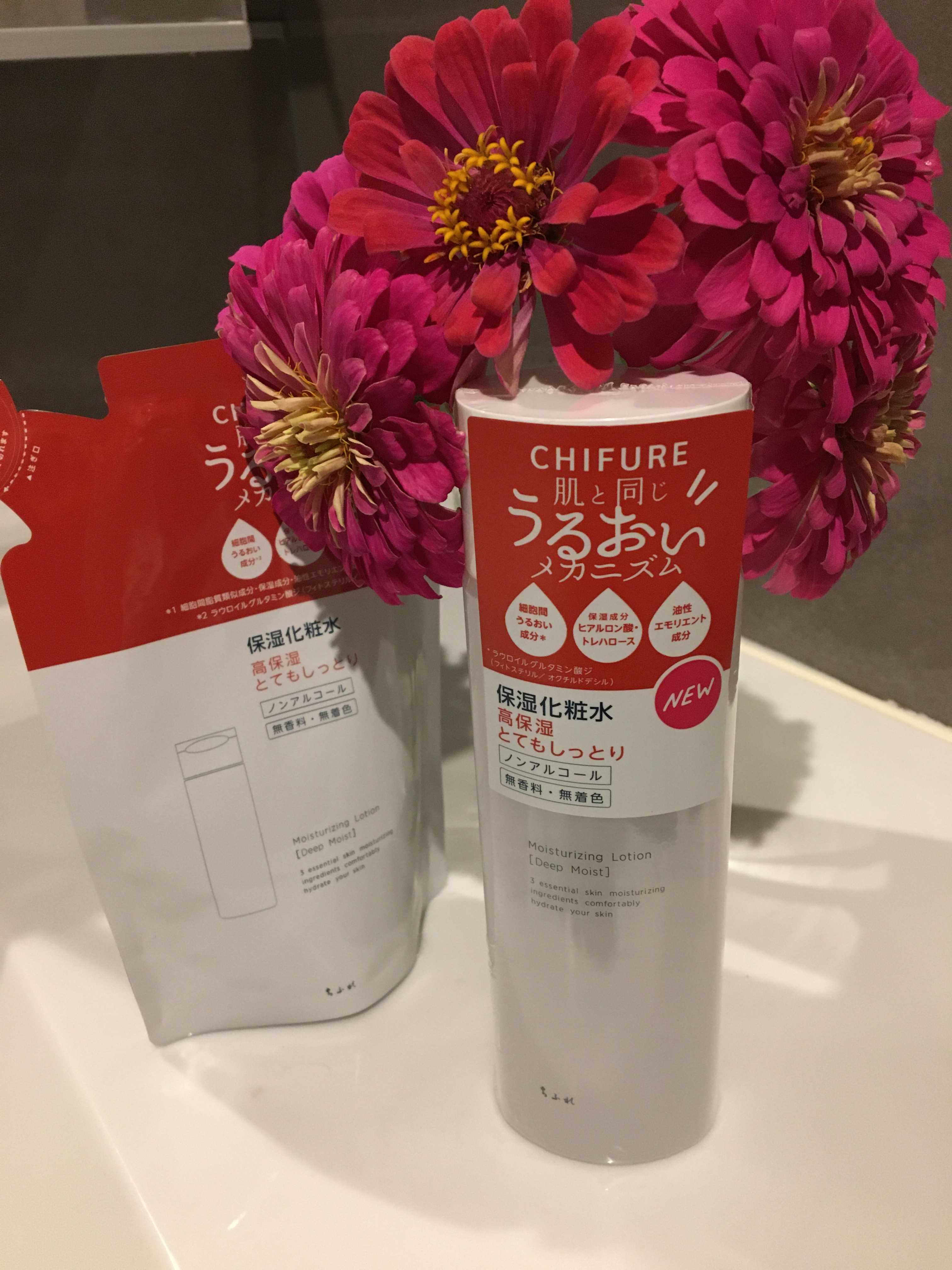ちふれの潤い化粧水。こんなに潤ってノンアルコール。お肌に優しいだけでなくお財布にも優しいのでじゃぶじゃぶ沢山使えます。