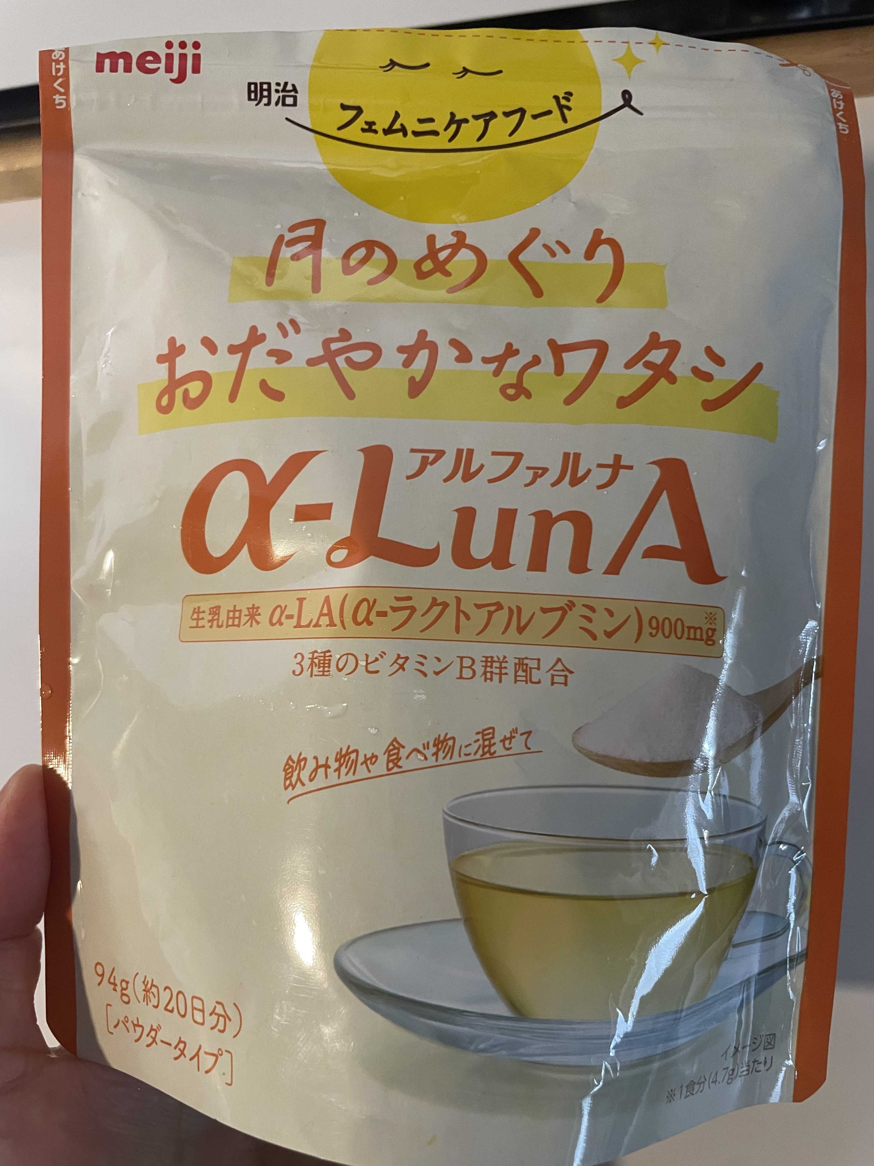 ラクトアルブミン配合で、肌の保湿力やハリ・弾力性をサポートする効果があるそうです。ラクトアルブミンには血糖値を下げる効果や、免疫力を向上させる効果など、健康に関する様々な効果も報告されているので飲まない訳にはいかないです。明治から出たアルファルナは無味無臭、水でも溶けやすくて飲みやすいですよ。