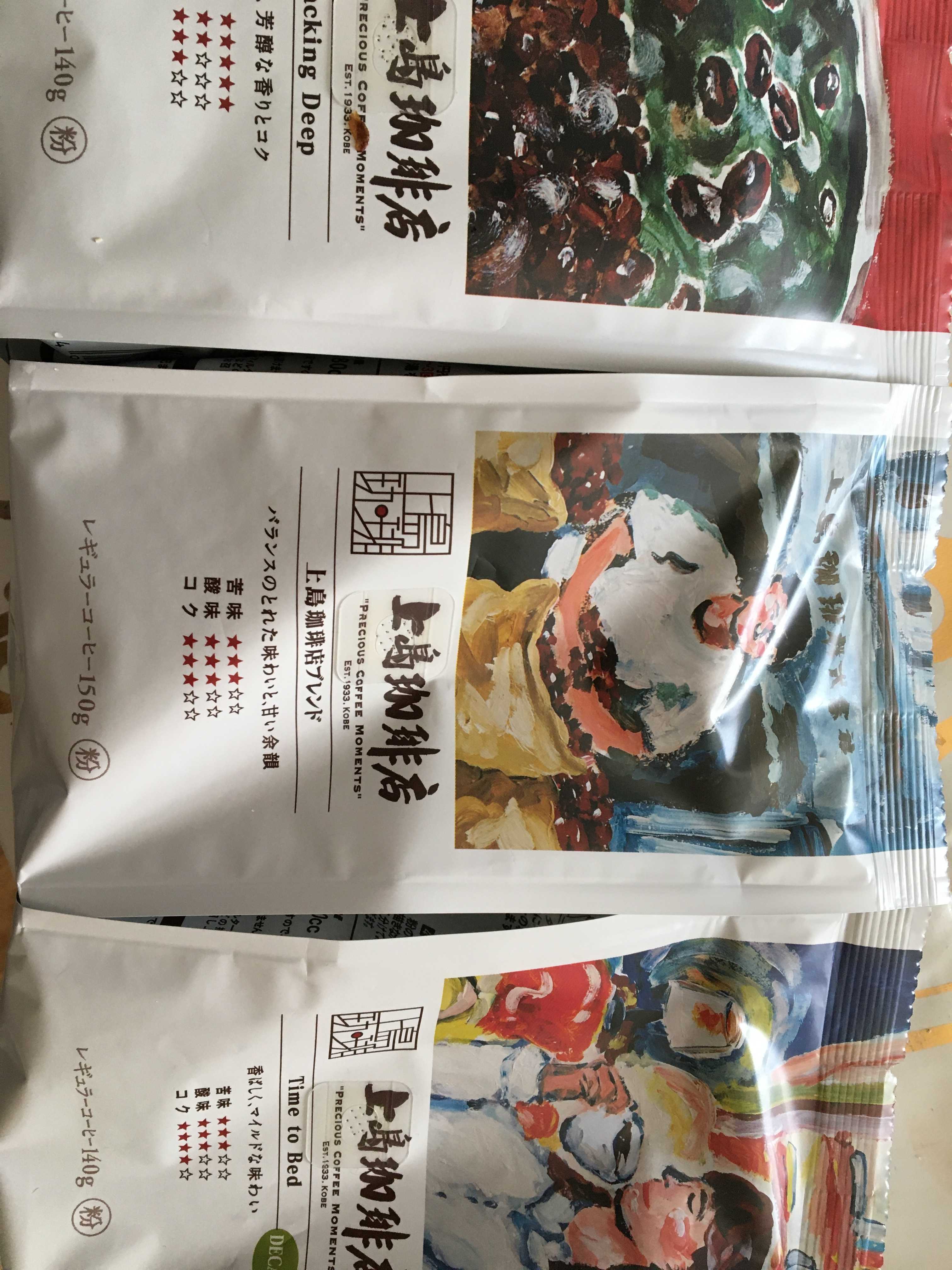 パッケージもかわいい上島珈琲店苦味酸味コクのバランスがちょうど良くローストナッツの様な香り。これからの季節アイスも楽しみ。