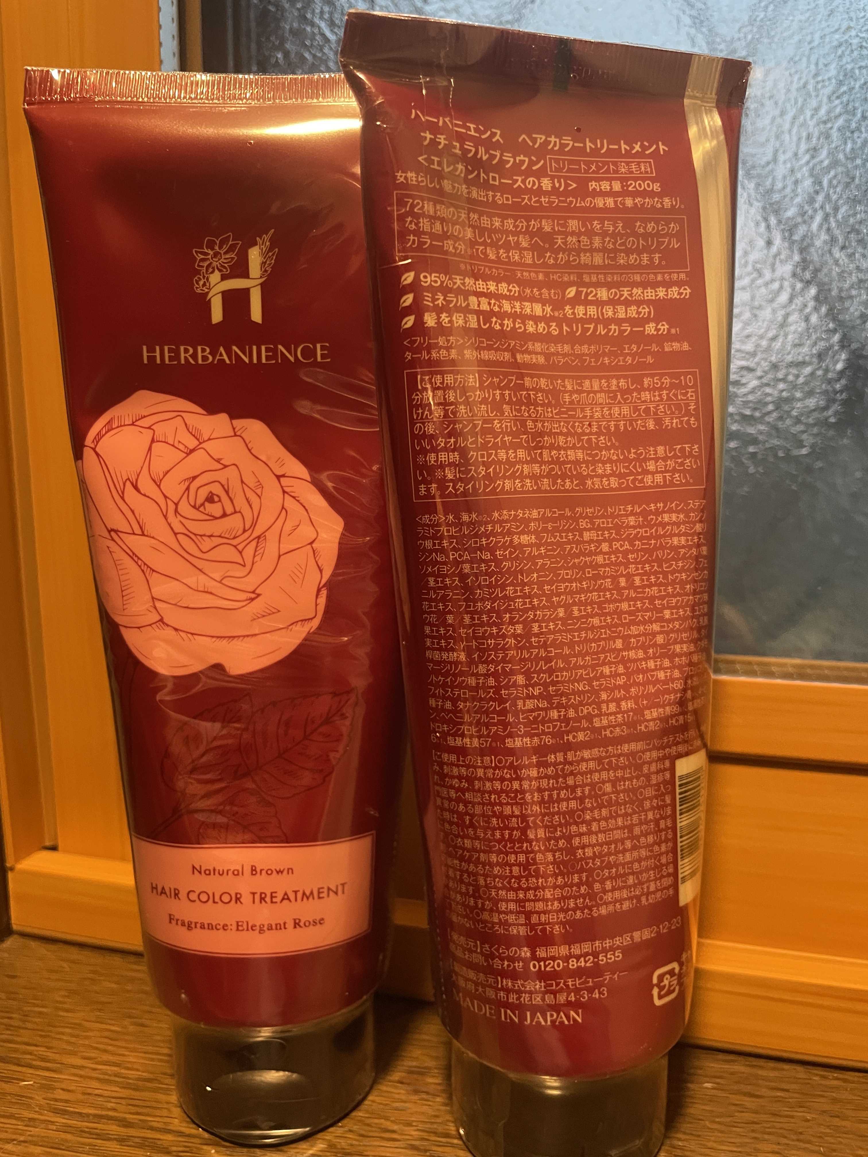 白髪染めが頭皮や髪に悪いと聞いてカラートリートメントやシャンプーにこだわってます。カラートリートメントの特徴は日持ちしなくて、次の日シャンプーすると白髪が目立ってしまい毎日使わないといけません。このバーバニエンスのカラートリートメントは3日ほど持ってくれて私は週2くらいで使ってます。ローズの香りも良いからリピートしたいです。