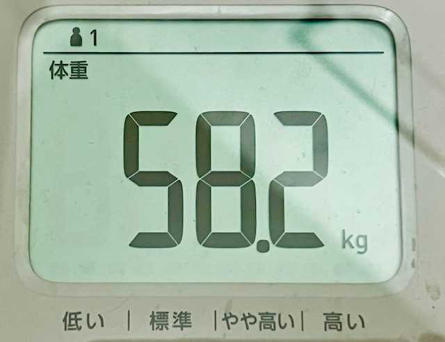 体重は、夕食後・入浴前58.2kg。4日前から0.1kg減った。