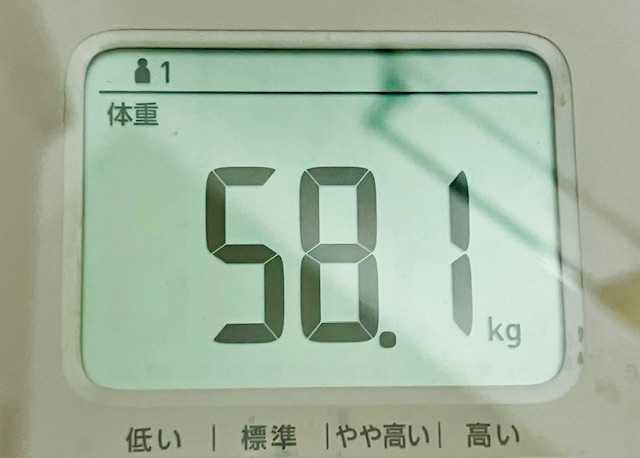 入浴後、58.1kg、、入浴前から0.1kg減った。