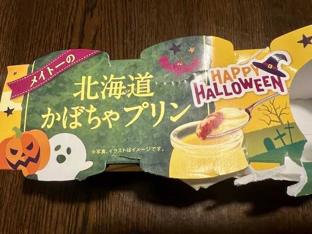 おやつは、北海道かぼちゃプリン。ハロウィンですね。