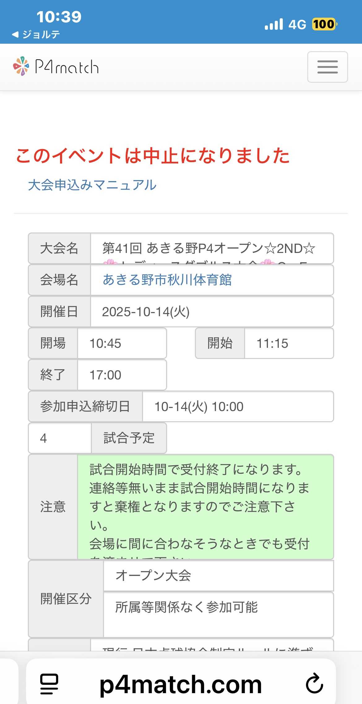 紺・青・水色の卓球ユニフォーム、黒・青のスコート、黒の股関節スパッツ、白・水色の靴下、黒の紐靴。 ![]() 青のレインパーカー、紺のパンツ。 ![]() 朝食は、カレー饅、チキンクリームシチュー(鶏・ブロッコリー・じゃがいも・人参・玉ねぎ・牛乳・胡椒)、カリカリベーコン・コーン・レタスサラダ、鶏・中華クラゲ・豆もやし・胡瓜の和え物、カフェオレ。 ![]() 食材配達のヨシケイに雑貨も注文。 「おもちもキレイに焼ける!」お手入れ簡単!焼き網シート。 ![]() 洗浄と撥水のコートスプレー。これ一本でキレイが続く!一度にwの効果で時短掃除。 タイパがいいものに弱い私w ![]() あきる野p4match男女シングルスに行ったのですが、参加にクリックしようとしたら、 「このイベントは中止になりました」と出てきて、ショック・・・ ![]() 私「今日の試合、中止なんですか? 来てしまいました。ご連絡いただきたかったです🥹 バラを見て帰りますね」 卓球の荷物を車に置いたまま、一応体育館を見に来たけど、卓球の人たちは見当たらない・・・ ![]() 主催者のMさん 「レディースダブルスは人数不足のために中止になりましたが、Tさんお申し込みの大会はあります」 「今着きました!」 肝心のレディースダブルスや、シングルスが隠れて良く見えないのです・・・ ![]() 私「良かった! すみません。レディースダブルスを見てたのですね😅 帰らなくて良かった」 卓球の荷物を駐車場に停めた車に取りに行き、バラ園の撮影。 ![]() ![]() ブランコも見える。 ![]() バラ。 ![]() ![]() ![]() ![]() ![]() レンガの門の向こうが駐車場。 ![]() ブランコ。フォトスポットかな。 ![]() ![]() ![]() アイスバーグ。 ![]() ![]() ユリイカ。 ![]() ![]() バーガンディ・アイスバーグ。 ![]() ![]() アイスバーグ。 ![]() ![]() ウルメールムンスター。 ![]() ![]() アンジェラ。 ![]() ![]() パットオースチン。ご近所のOさんに、この挿し木をもらったのですが、枯らしてしまった・・・ ![]() ![]() 羽衣。 ![]() ![]() サマーメモリー。 ![]() ![]() ![]() ![]() ![]() ![]() ![]() 卓球の試合が始まるので、撮影はこの辺にしておきますね。 あきる野p4match男女シングルスに参加。 2勝3敗12人中9位 女子に2勝1敗男子に2敗 3-0,3-0,0-3,0-3,0-3,0-3 7ポイント スコア率0.799 2勝3敗は三巴だが、ゲーム率(得失点差?)で3人中2位だった。