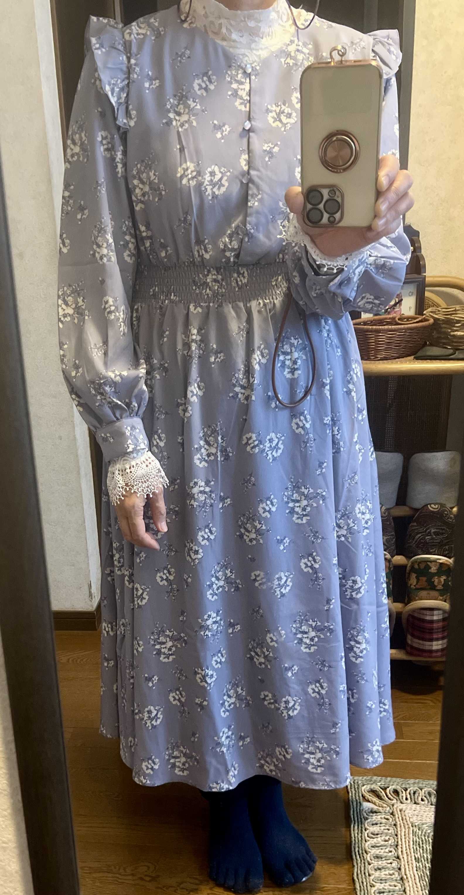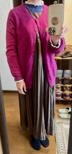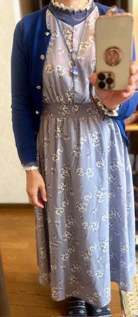 またネット購入した服が2着届きました。断捨離したので、ちょうど良かった。CAWAIIの紺・ベージュのワンピース。首の後ろでリボン結び。ただ垂らしてもいいのかなw首の前で結ぶことも出来たけど、ベルト代わりの紐も前でリボン結びするからしつこいよねwDoCLASSEの水色のツィードのスーツ。首元と、袖口のフリルが気に入ったのです。取り外し可能だしね。夫には、PTAの会合に出る時みたいだと言われた。固いかなwまあ、もしかしたら孫の七五三とかにお呼ばれすることもあるかもしれないから、そういう時にいいかもしれないw いつものワンピースより、少し改まった方がいいものねwジャケットだけなら、ワンピースの上に着るのもいいかな。パンフレットと化粧品の試供品も入っていた。CAWAIIのツィードのパンツスーツと迷ってたのですが、下の写真を見せたら、今度はパジャマみたいとのことw相変わらず口が悪いけど、まあ正直なのかもw