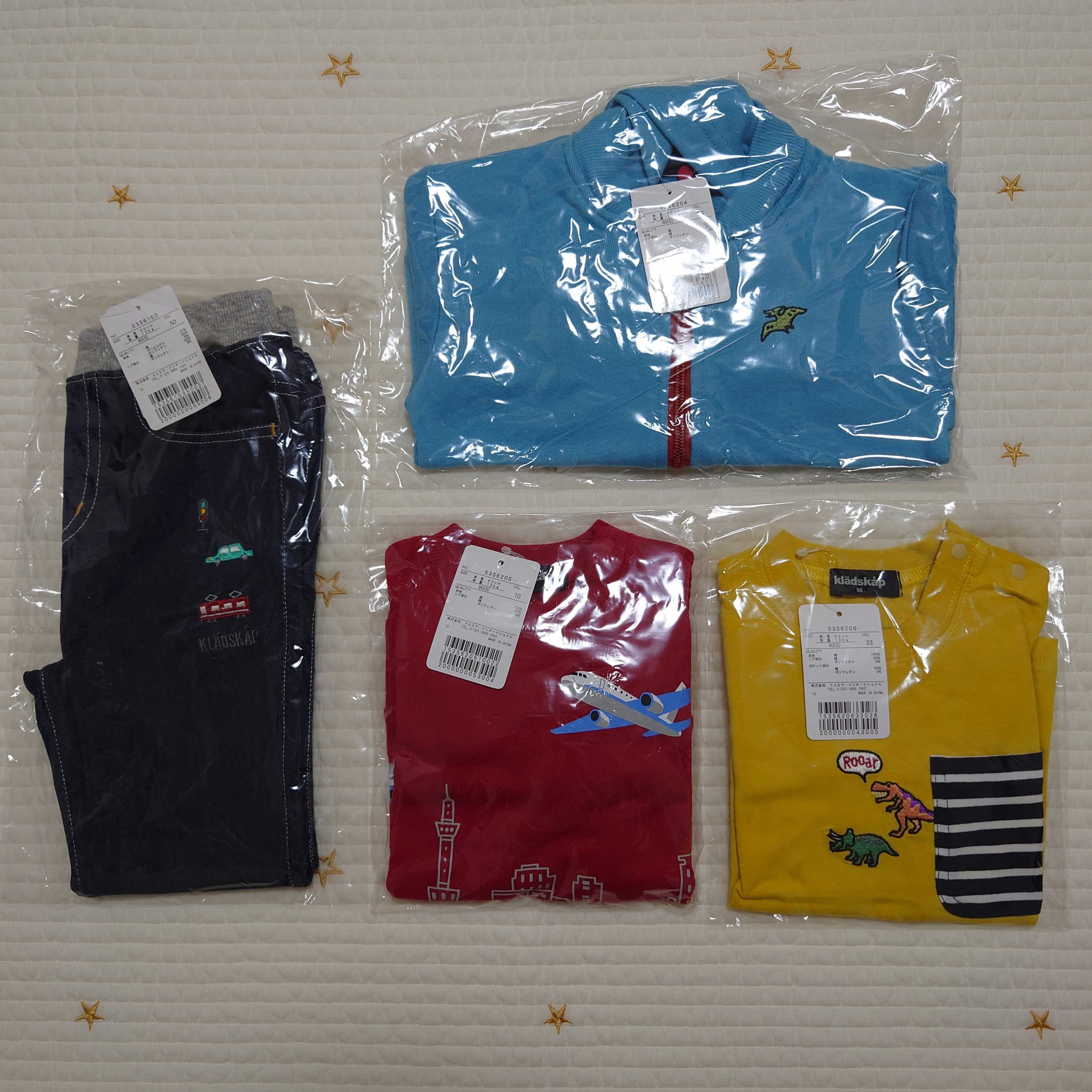 写真まとめて撮ってました 年明けにクレードスコープ福袋買いました! Bセットの90です。 楽天ナルミヤにて、7700円からの1000円クーポン使用で6700円で購入! ショップポイントも10倍でした。 ![]() 中身固定ですが、こちらです。 ![]() ナルミヤさんでは販売終わってるようで、他店さんのアフィ。 【入荷済】2026年福袋 クレードスコープ kladskap【Bセット】110cm120cm130cm 男の子 乗り物 恐竜 4点セット ナルミヤ【特別送料込】NARUMIYA ・パーカー ・トレーナー ・ロンT ・パンツ の4点入りで、バランスいいですね! 6700円で買ってるので、1点あたり1675円です ポイント考慮したら実質はもっと安いですけど ![]() トップス2点はどちらも綿100。 鮮やかなカラーで気に入りました! ![]() きれいなブルーのパーカーも綿100。 フードはもちろん取れます! パンツも綿100がよかったけど、まぁ福袋だし贅沢はあまり言わないでおきます。笑 車と電車と信号の刺繍が細かいデザインです! ※※ 前回の2025のときも90の福袋買ってたので、一緒に再掲しときます。 このセットは定価6600円だったけど、トレーナーは無くてロンTが2枚なんですよね。 お得なときに実質1着あたり1000円ちょっとで買った記憶があります! ![]() 同じセットではないけど、もう1つの2025のセットのほうはまだ販売されてます。 【販売中】(即発送)クレードスコープ(kladskap)【2025福袋】BOYSセット(11000円税込)6点セット【90cm-130cm】【期間限定 送料無料】ナルミヤ 福袋 解体品も売られてます。 下3つ全部1000円台 kladskap クレードスコープ【2025福袋バラシ販売】【BOYS男児ボーダー長袖Tシャツー】100-110cm 5346203 kladskap クレードスコープ【2025福袋バラシ販売】【BOYS男児ロンク゛丈ストレートハ゜ンツ】100-110cm 5346101 kladskap クレードスコープ【2025福袋バラシ販売】【BOYS男児フリースジップアップ】110cm 5346201 ※※ お気に入りの記事を「いいね!」で応援しよう