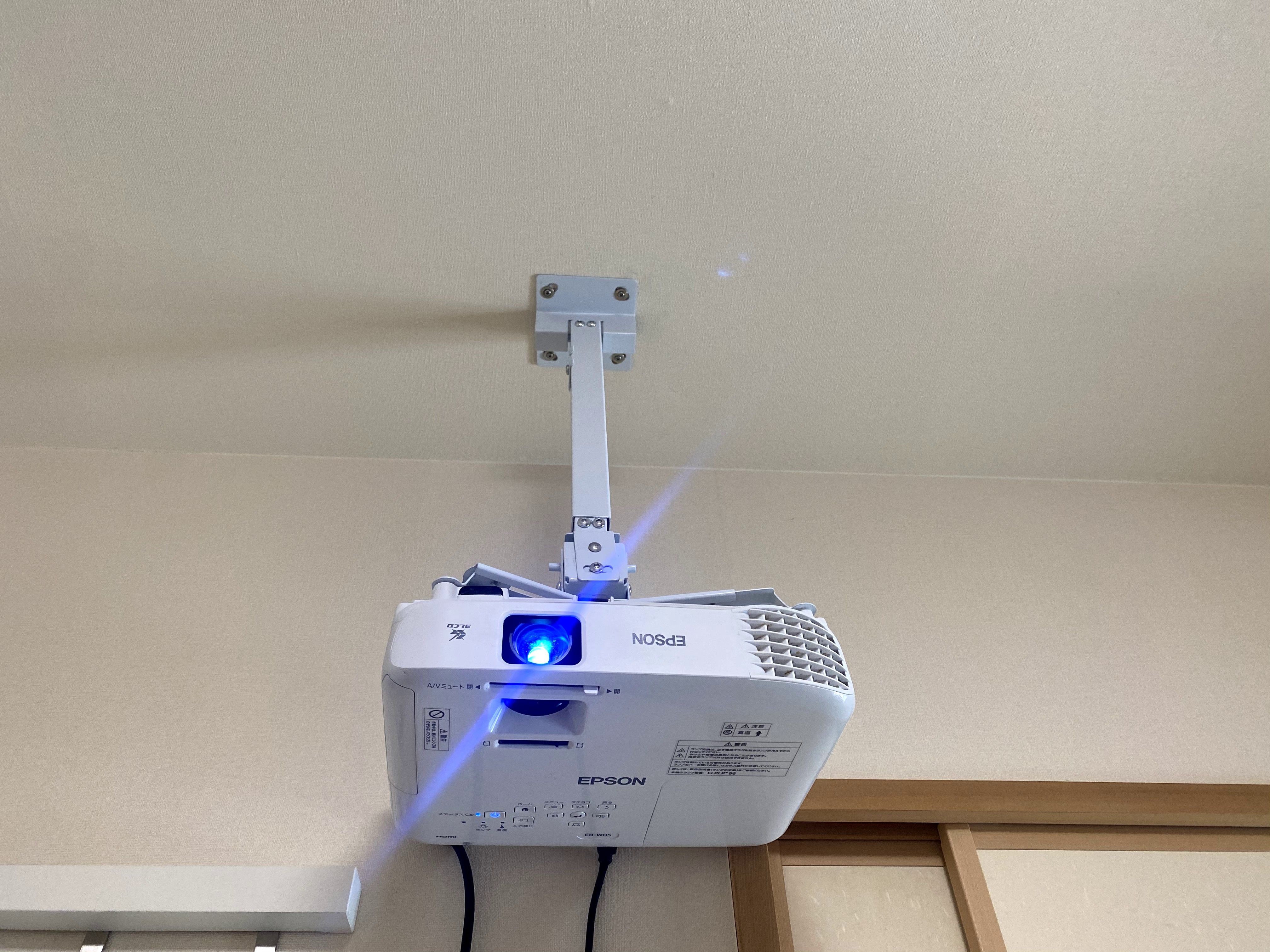 <重要事項> 取り付け方法の続き前回は天井にプロジェクターを吊るす所まで説明したと思いますので、その続きを記載します。(前回の状態) ![]() 天吊りアーム部分が長すぎるので、アーム横部にある調整金具を六角レンチで丁度良い高さに調整し、プロジェクタの角度もアーム下部にある調整金具のネジを締めて調整します。 ![]() うんうん、良い感じになりました! 実際に最初に投影したのが以下の状態です。 ![]() やはり逆さになりますよね…。台形もぐちゃぐちゃだし。 昼間に部屋の照明をつけていたので若干暗いですが、あとはプロジェクタ本体の逆さ補正と台形補正を行います。 ![]() 大体80インチ相当まで表示する事が出来ました。 因みに部屋の照明を消し、Googleを表示した状態が以下になります。 ![]() いやー、充分明るく奇麗になりました! しかも今までテーブル設置していたので邪魔だったのが解消され、熱風も受けなくなりました! 欲を言うと、壁紙に投影ではなく、スクリーンに投影したいですね。。。 (しかも出来れば電動のもの。。。値段が高いでしょうけど…) 電動でなくて常設なら、1万円台の価格で買えそうなのに。。。 しかも我が家のスクリーンにしている壁はモルタル(コンクリート)なので、振動ドリルなどを利用した工事が必要になるので、暫くは諦めます。。。 あとはBluetoothのバースピーカーを投影先下部に設置して、ホームシアターの完成です! これで思う存分、Amazon Primeビデオが見放題です! テレビを見たい方には、地デジTVチューナーをパソコンに接続してご利用するのがおススメです。 ⇒PCのHDDに録画予約も可能です。 ホームシアターを検討されている方で、お安く構築を希望される方にはPCを利用した上記の様な方法もおススメです。 長くなりましたが、お読み頂き有難うございました! お気に入りの記事を「いいね!」で応援しよう