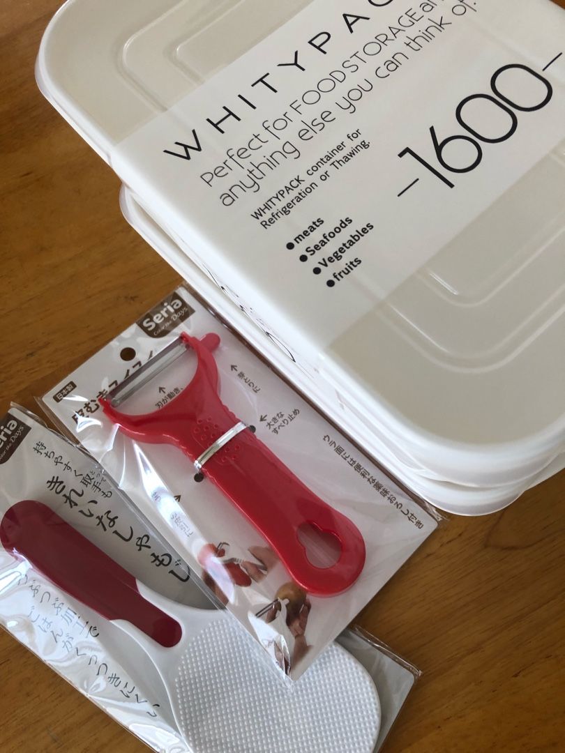 くっつきにくい「しゃもじ」が、ご飯がくっつくようになったので交換。ピーラーもかなり力を入れないと、皮が剥けなくなったので交換。大きな保存容器は、カレー用。この暑さだとすぐダメになっちゃうから。ここら辺は、108円以上のモノを使ってもあまり変わりがないような気がするのでダイソーとかセリアで買っちゃいますね。