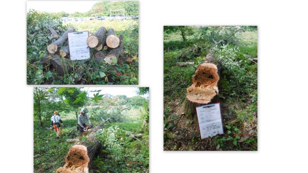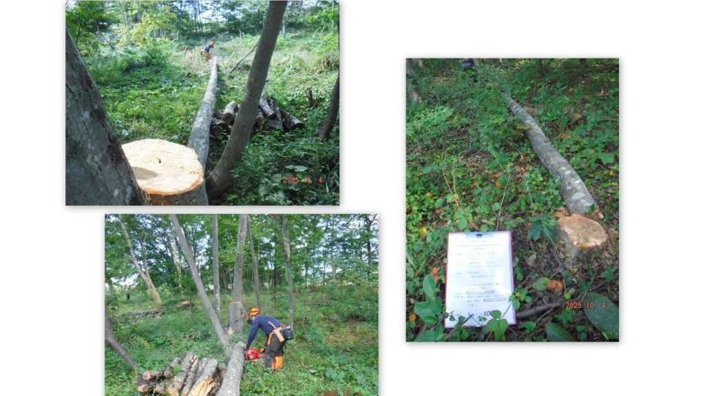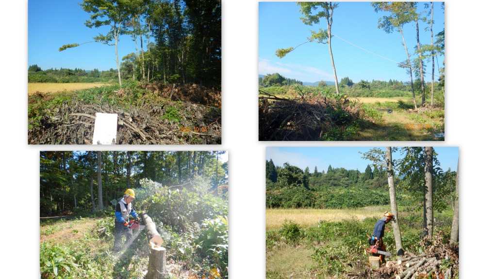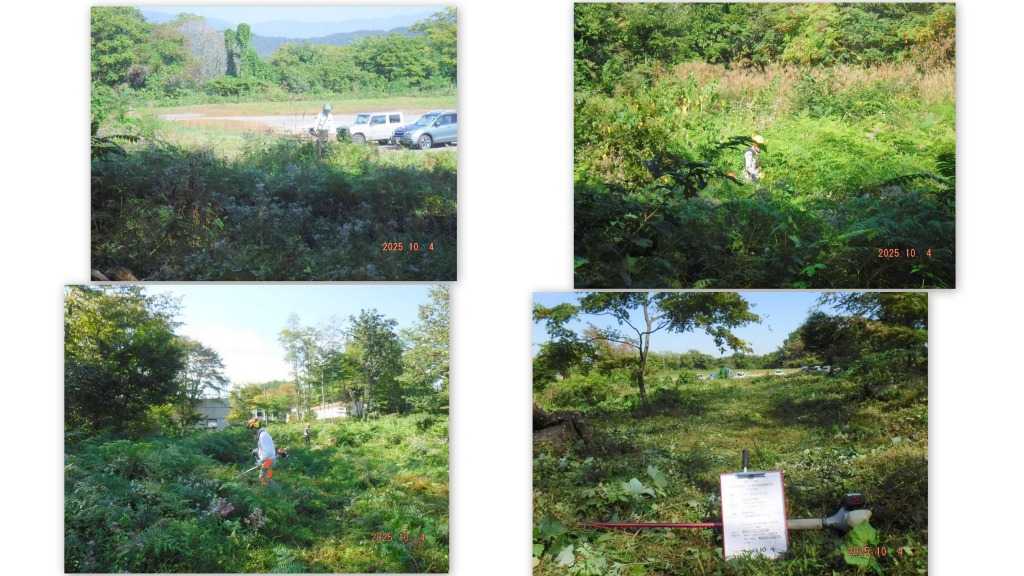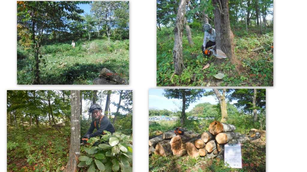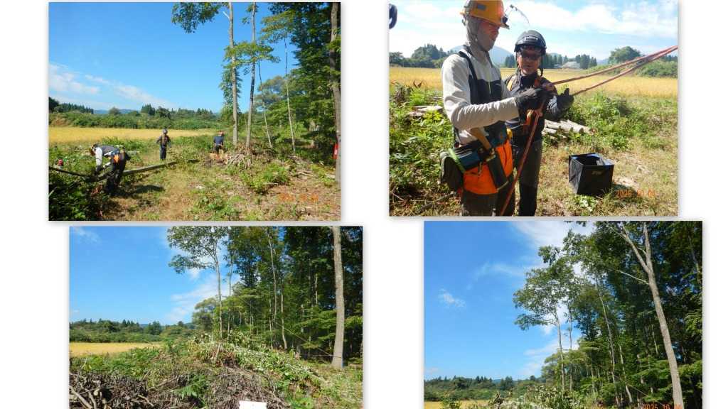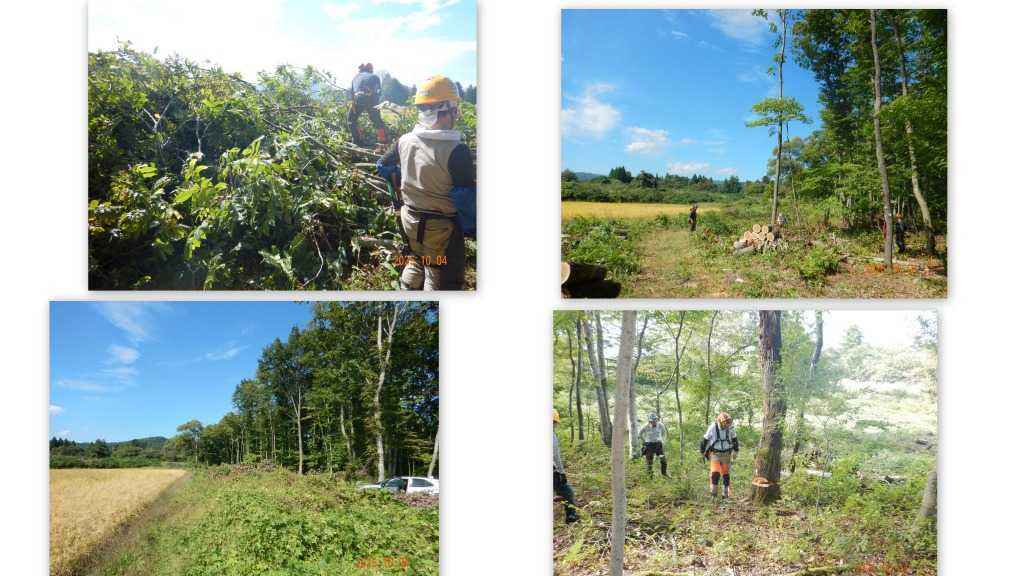 10月4日(土)10月第1回目の活動が雫石町で行われ、鶯宿温泉病院裏で刈り払いを4名で南畑川付近の伐木に6名の計10名が参加しました.