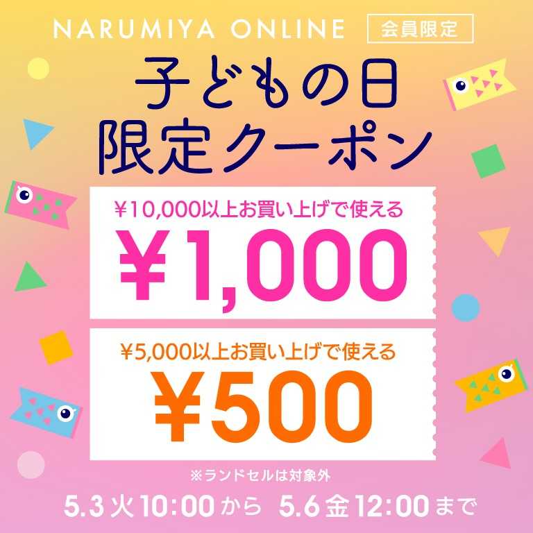 ナルミヤさん、本日から5月6日まで【子どもの日限定クーポン】が出ていますね。