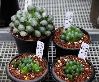 3月7日(土)曇、5~11℃、湿度 57%。8日 は晴て1~11℃、9日は晴時々曇で -1~13℃ 本日は、ハオルチア・氷皇などの台湾産苗と ドドソン紫オブツーサとピリフェラ白斑など にほんブログ村 ![]() ハオルチア・氷皇 紅葉コンプトニアナのミュータント種 裏窓系の中国生まれの台湾苗 ![]() ハオルチア・西亜基? 台湾苗の購入時の名称、これもミュー タント(突然変異個体)のよう ![]() ハオルチア・アトロフスカミュータント (Haworthia magnifica var.atrofusca Mutant 'Watermelon')=ウオーターメロン モンスト化し分頭して群生する。 ![]() ピリフェラ白斑(左)と台湾産の ハオルチア・ピュアホワイト(右) 同一環境での栽培では少し違うように 見えるが・・まだ断定はできない。 ![]() ハオルチア・ドドソン紫オブツーサ (Haworthia 'Dodson Purple') OB-1タイプ、子供を外して植替 ![]() OB-1 植替え後 子供8個、小さいのは寄せ植えに ![]() ハオルチア・OB-1実生 葉先に1本毛が有るので交配種。 ![]() ハオルチア・ドドソン紫オブ OB-1タイプは葉先に毛がない。 ------------------------- ご覧いただきありがとうございます よかったらポチをお願いします。 にほんブログ村 お気に入りの記事を「いいね!」で応援しよう