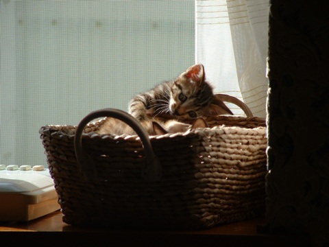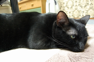 がっちゃんがこんなにかわいく撮れることは、とても珍しいのです。というか、最近、よく細い目をしてて、こんなにかわいいことはリアルでもあんまりないです。今日のお休み、けっこう活動しています。あたし。1回目のブログを書いてから、歯医者さんに。1年くらい行ってなくて検診のつもりで行ったら、新しい虫歯はなかったよ。クリーニングだけしてもらって1,880円。エステより安いなーと思ったり。2回目のブログを書いてから、美容院。髪が伸びるのが早くて、いつもビックリされます。今日もビックリされた。常連なのに!それから、モスで新しいテリヤキバーガーを食べながら、読書。そばアレルギーの男に、そば粉を混ぜたお茶を出す場面があって、ショックを受ける。それから、頼まれていたチケットを取りに行き、会社に顔を出して確認のFAXをして、3回目のブログを更新し、いま4回目を書いている。あー、ねむい!ちゅーがうるっさい!ちょっと寝よう。それではまた。5回目のブログで会いましょう。