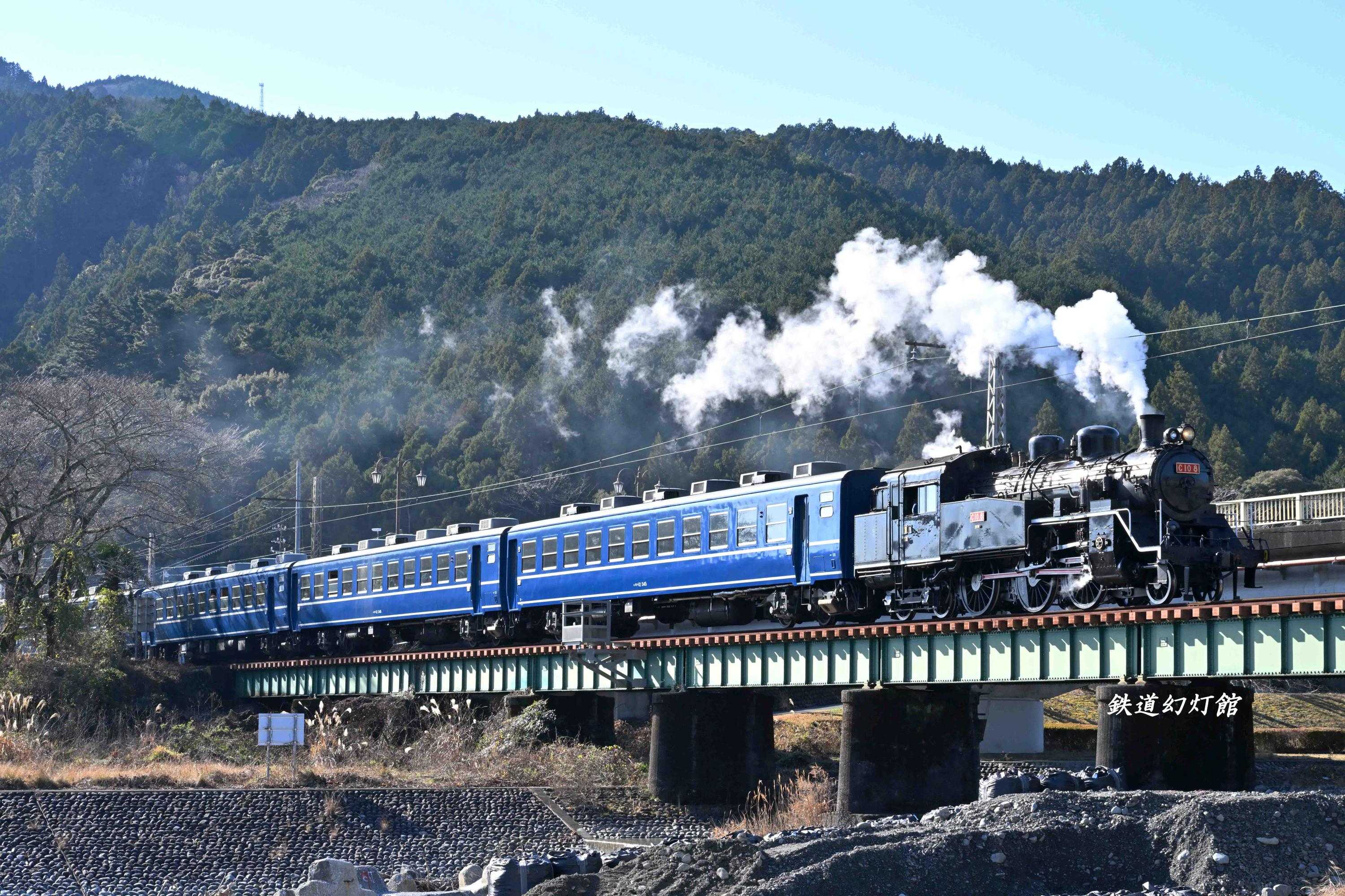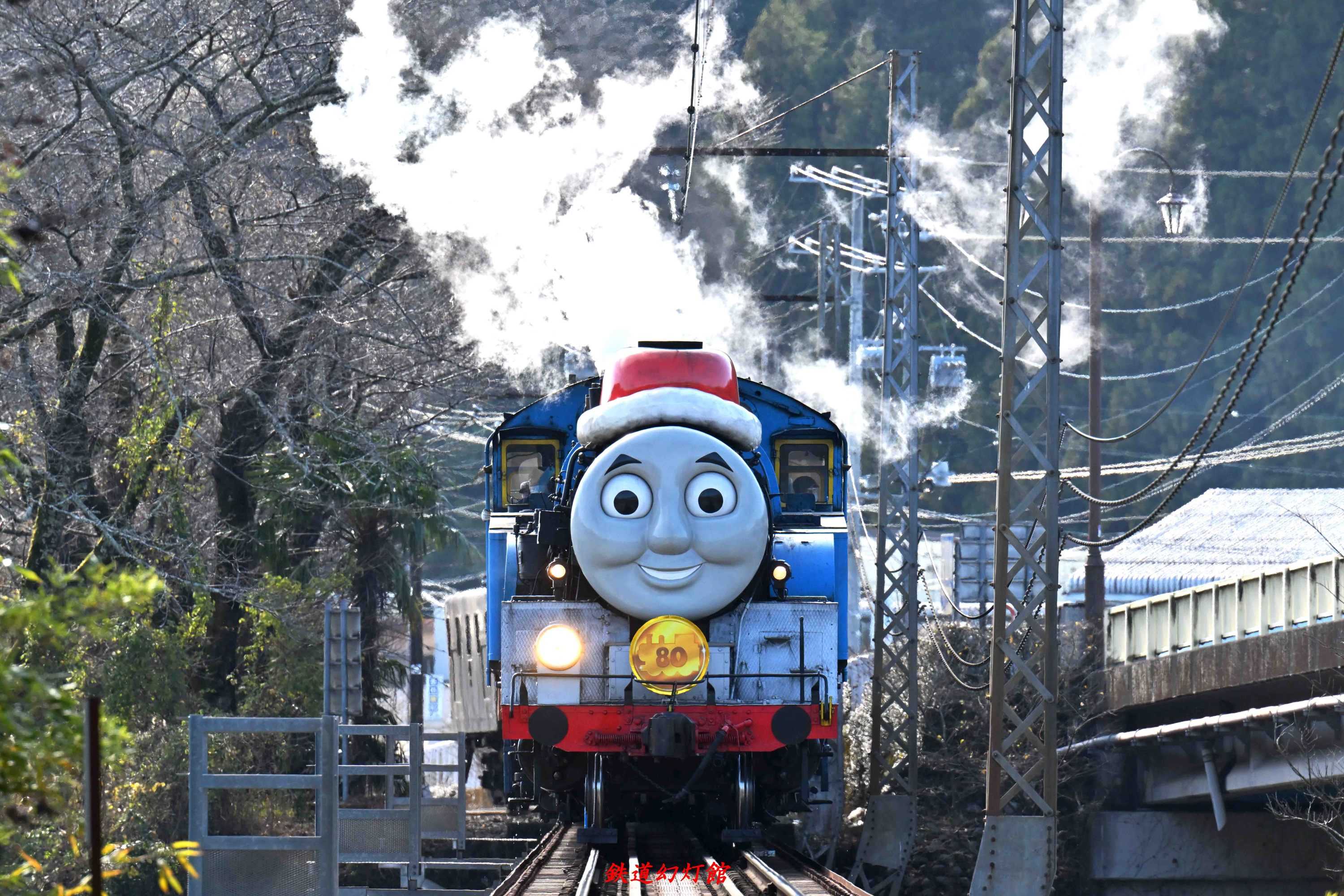 現在、列車は川湯温泉笹間渡駅までしか走りませんが、大井川鉄道の沿線には鉄橋や茶畑など、この土地ならでは、というロケーションがそろっているのがうれしいところ。鉄橋で撮影したあとは、列車が茶畑のそばを走るポイントへ移動しました。 現地に到着すると、列車はすぐそこまでやってきていました。動画をセットすると、ギリギリの状況でしたが、何とか撮影することができました。 C108号機が赤ナンバーをつけているのが、クリスマスシーズンらしい演出で、これにも大きな花まる! ※※※※※※※※※※※※※※※※※※※※※※※※※※※※※※※※※※※※※※※※※※ 大井川鉄道の様子を「サンタトーマスや黒いSLなど盛りだくさん! 年末の大井川鉄道」と題してYouTubeにアップしています。川根路の山々に反響するトーマスやC10の汽笛もポイントの一つです。映像とともに音声もお楽しみください(リンクは、こちら)。