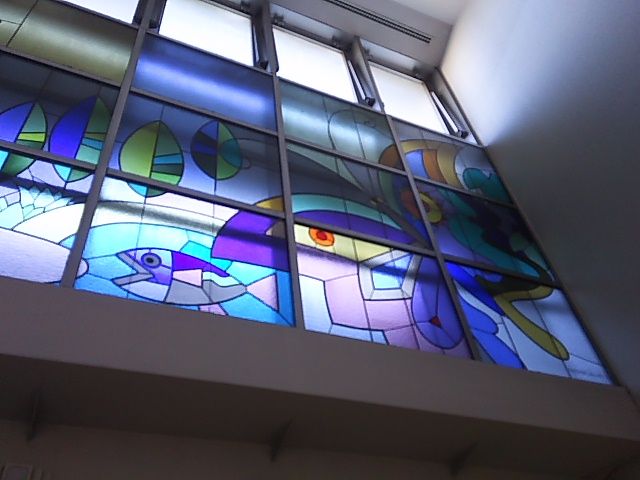 今回紹介するステンドグラスは雑司が谷駅に設置されているステンドグラスです。 前回紹介したJR山手線・目白駅から徒歩7、8分の所に東京メトロ副都心線・雑司が谷駅はあります。 ネットで検索してもあまり取り上げられていないので、 本当にあるのか? 既に撤去されているのか? 半信半疑でしたが、見て来ました😊 こちらがそのステンドグラスです。 ![]() 午前中に行ったのですが、ほとんど光が入らずに残念でした😢 午後に行けば良かったのかな? 大きな作品で後ろに下がり写真を撮ろうと思ったのですが、充分なスペースがなく全部入りきりませんでした。 例によって、分割の写真です。 ![]() ![]() ![]() ふくろう(池袋)にビル群(サンシャインシティ?) がモチーフなのでしょうか?(同じ豊島区繋りで) 作品名も作者名も表記されてませんでした。 また千登世橋文化センター(区立のコミュニティセンター)が隣接しているのにも関わらず、回りには人が全然いません。 きっとステンドグラスがあることさえ知らない人が多いのかも? 東京メトロ副都心線・雑司が谷駅をご利用の際には、是非御覧ください。 (目白通り方向の" 2 "の出口です) ステンドグラス工房かわもとのホームページはこちら ステンドグラス工房かわもとのネットショップはこちら お気に入りの記事を「いいね!」で応援しよう
