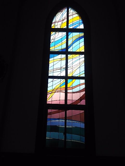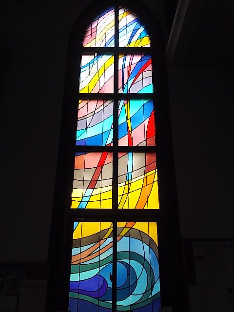 大分旅行に行った際に鑑賞したステンドグラス。 今回は大分県別府市にあるカトリック別府教会のステンドグラスを紹介します。 ![]() カトリック別府教会の現在の聖堂は1950年に落成されました。 当時教会はひときわ目立つ建物だったため、別府のランドマークとなっていたようです。 ![]() 聖堂に入っているステンドグラス。 2006年に別府教会の創立75周年にちなんで、ポーランドからステンドグラスを取り寄せ、改修工事の際に入れられたそうです。 訪れた時には雲空でしたので自然光が余り入らず、ステンドグラスをキレイに観ることが出来ませんでした😢 ![]() ![]() ![]() 両サイド7枚ずつ、正面の祭壇、後ろと聖堂の至る所に入っているステンドグラスはデザインはシンプルですが、多彩な色使いで聖堂を明るく照らします。 真っ赤な太陽は神の象徴。 水は洗礼。海は信仰の象徴だそうです。 滞在時間は約30分程でしたが、心が洗われました😊 別府市に訪れた際には是非、御覧ください。 やっぱり晴れた日がオススメです。 おまけ 宿泊した別府市の明礬温泉、『岡本屋』 ![]() ここの裏玄関にも可愛らしいステンドグラスがありました。 ![]() 旅館のお風呂、料理、そして接客、とても良かったです。 ラッキーなことに『スーパームーン』を旅館の露天風呂(他に入っている方が居なかったので貸切状態)で観ることが出来ました😊 ステンドグラス工房かわもとのホームページはこちら ステンドグラス工房かわもとのネットショップはこちら