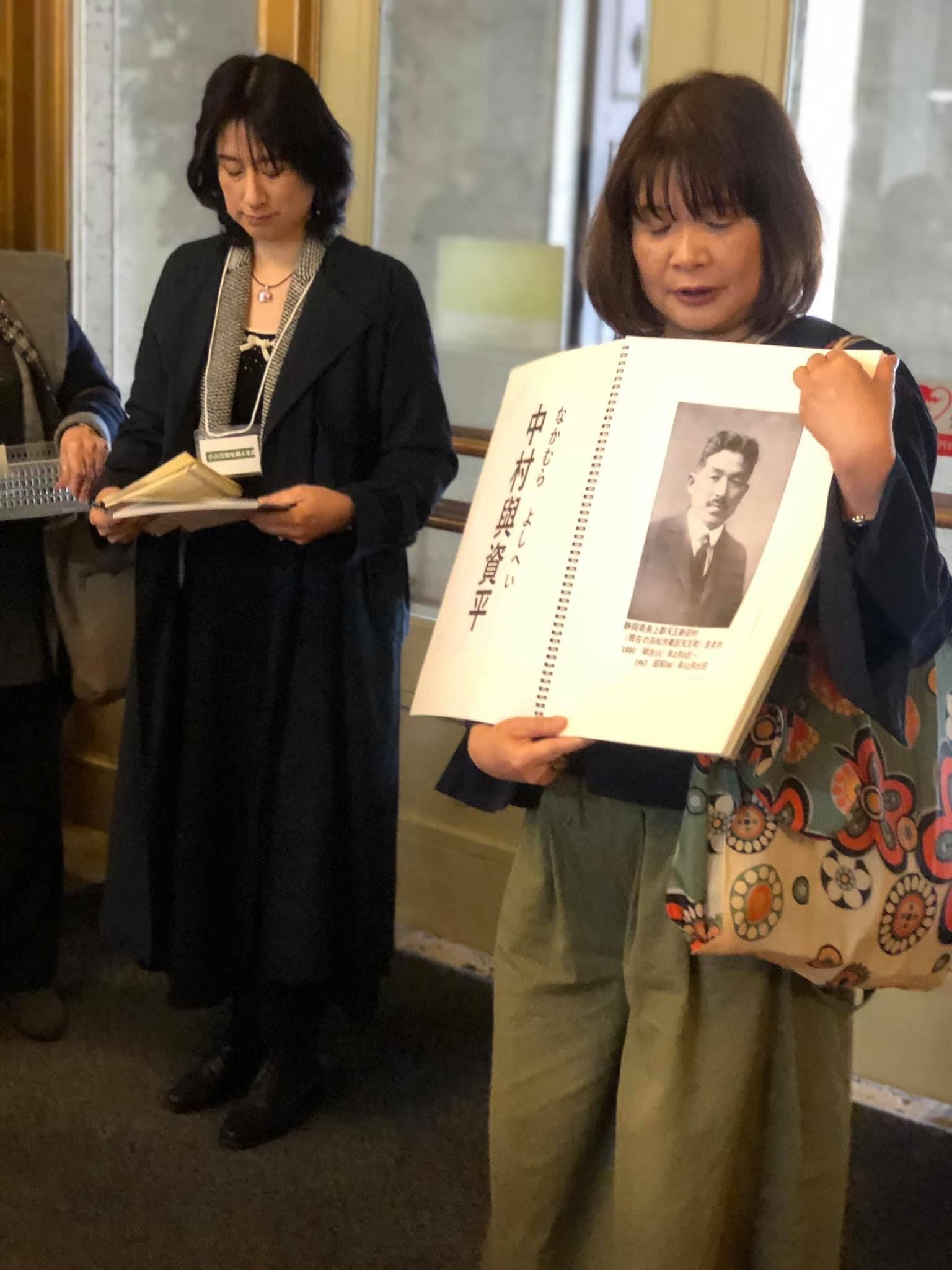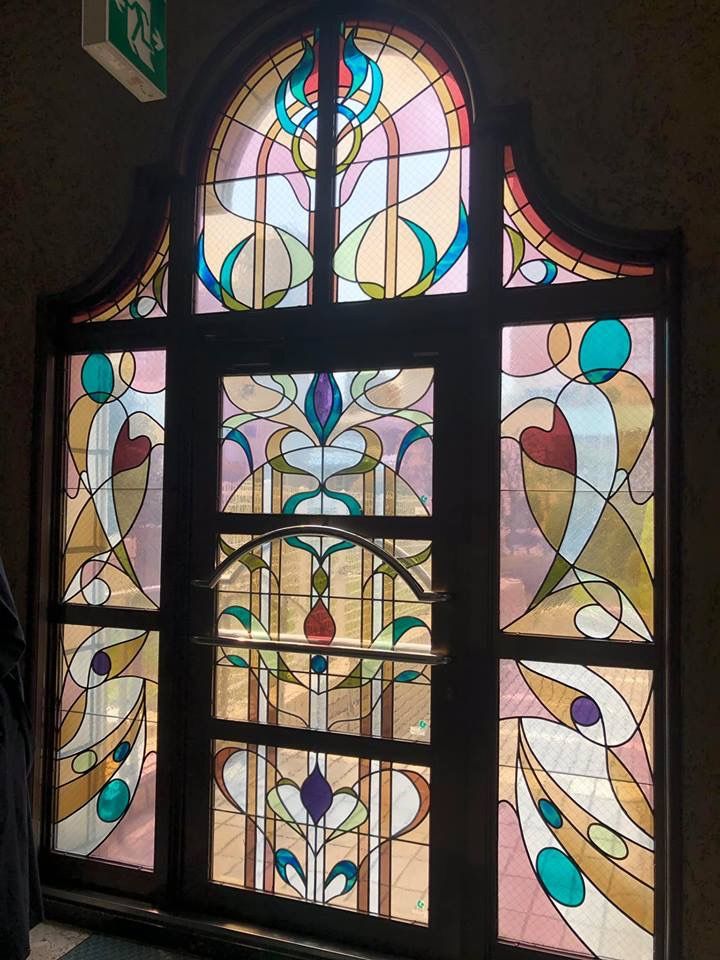 3/20から旧・新市庁舎にて開催されました、 『小川三知 小樽 和光荘 修復ステンドグラス完成お披露目会』 は 3/29 大盛況のうちに終了いたしました。 そして最終日の29日は、小川三知研究家・井村馨先生の旧市庁舎のステンドグラスガイドツアーが行われました。 当初は 午後1回 30人の予定でしたが、好評につき午前の部も急遽増設されました。 私は午前の部に参加させていただきましたが、午前の部も満席でした。 静岡市旧市庁舎 1934年(昭和9年)建築 ![]() 旧市庁舎はとても立派な建物で、装飾も非常に贅沢に作られていました。 私も永く静岡市民ですが、こんなに素敵な建物だったことを初めて知りました。 今回、本会議場へも初めて入らせていただきました。 ![]() ![]() 本会議場には8枚のステンドグラスパネルが入っています。こちらのステンドグラスは建築当時 村上開明堂で制作されたそうです。 当時 村上開明堂にはステンドグラス制作部門があり、小川三知の2人の甥達が働いていたそうです。 この小川三知の2人の甥達がこの議場のステンドグラスの制作に携わっていたと思われています。 小川三知ゆかりの人物が制作したパネルがこの旧市庁舎に施工されていたのは、やはり小川三知と静岡との繋がりを感じ、嬉しい気持ちになりました。 ![]() ![]() ![]() 旧市庁舎にはこれらのパネルの他に玄関正面にもステンドグラスパネルが入っています。こちらのパネルは、新市庁舎が建築された際、新しく制作施工されたものです。↓ ![]() 約1時間のガイドツアーでしたが、井村先生のお話はとても興味深く、楽しいお話を聞くことができました。 井村先生、ありがとうございました。 ![]() お披露目会が行われた、小川三知 小樽 和光荘 修復完成パネル ↓ ![]() 今回このお披露目会を通じて初めて小川三知を知って下さった方、兼ねてからのファンでわざわざ遠方より(埼玉、千葉、横浜などなど)来て下さった方、本当に多くの方々がこのパネルを観てくださいました。 100年以上たった今でもこうして多くの方に愛され続ける作品を残した小川三知の偉大さを、改めて感じることができました。 かわもと工房は 小川三知を讃える会の事務局を務めております。 今後、このパネルの常設展示と 保存保護を 静岡市に嘆願中です。 10000人を目標とした署名活動も行なっております。 ご協力いただける方、是非工房までご連絡をください! ※ 掲載しましたお写真は かわもと工房のお客様「片山勝喜さま」より お借りいただきました物です。 いつもありがとうございます😊 ステンドグラス工房かわもとのホームページはこちら ステンドグラス工房かわもとのネットショップはこちら
