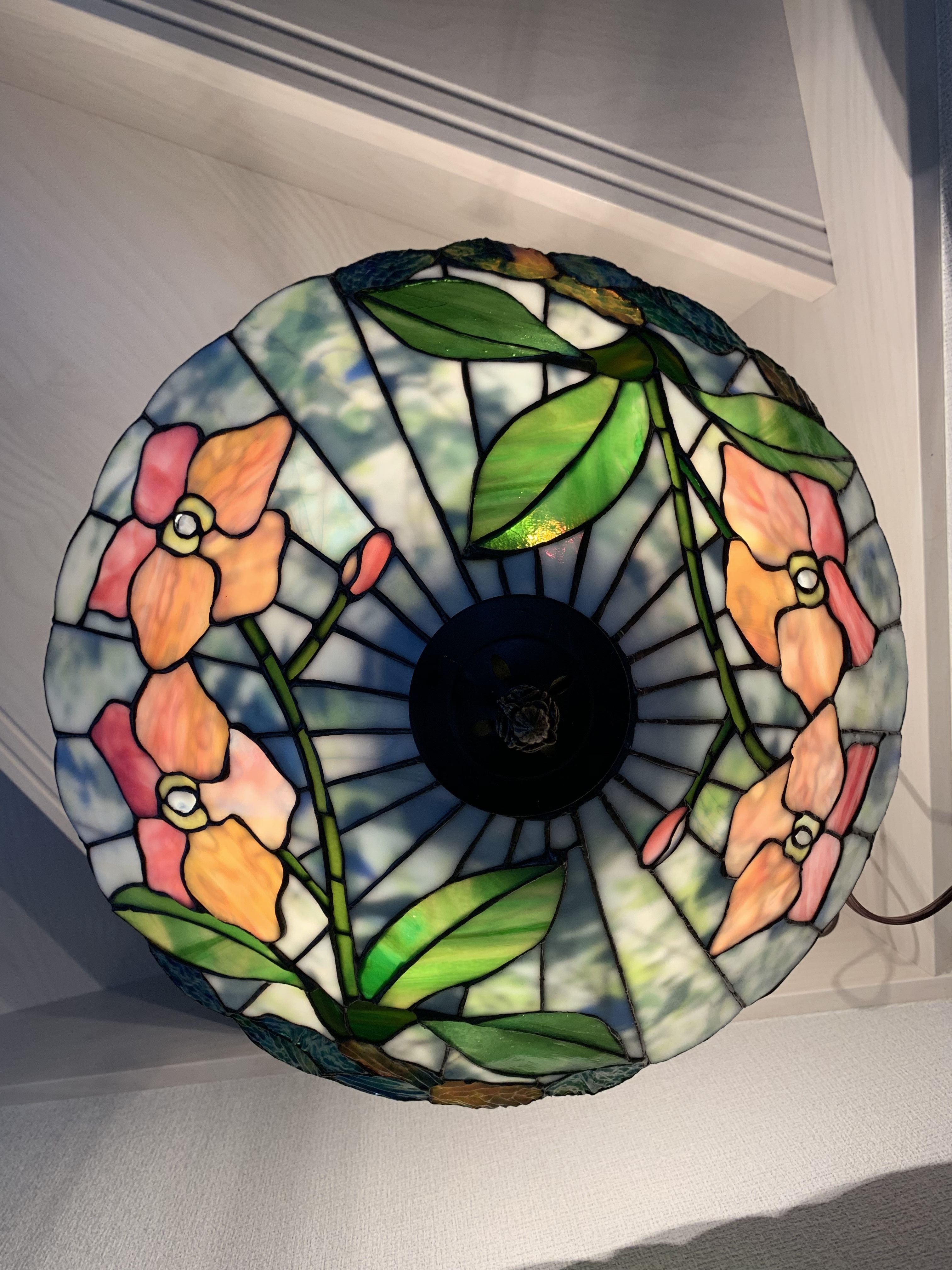 木曜日の生徒さん(T . Mさん )のランプが完成しました。 ![]() ![]() シェードの大きさは16インチ 約40センチ程になります。 バックに使用しているガラスは、アメリカ ブルザイ社のフラクチャーというガラスで、ガラスの裏に色々なガラスのチップが溶け込んでいます。電気をつけていない時は白色に見えますが、電気をつけると裏のガラスのチップの色が浮き上がって見えます。 フラクチャーには色々な色があり、非常に人気のあるガラスです。 花も葉もそれぞれ2種類以上使われています。ガラスの使い方がとてもいいですね! こちらの作品は9月の生徒作品展に出品されます。 作品展にて、是非実物をご覧下さい。 前回のブログでもお知らせしましたが・・・。 かわもと工房 生徒作品展 日時 9/19(木曜日)〜9/23(月曜日)祭日 会場 ホテルセンチュリー同ビル内 サウスポット3F 「ホビースクエア」 只今、ポスター・DM 等 製作中です。 皆様のお越しをお待ち申し上げております。 ステンドグラス工房かわもとのホームページはこちら ステンドグラス工房かわもとのネットショップはこちら お気に入りの記事を「いいね!」で応援しよう