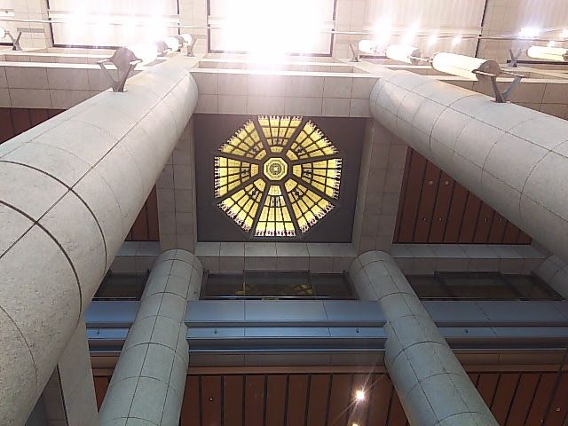 今回は東京都中央区日本橋にある“ 三井タワー ”のステンドグラスを紹介します。 ![]() 現在、三井タワーがある場所には旧三井二号館があり、そこのトップライトにこのステンドグラスが入っていましたが、取り壊しの際に取り外されたそうです。 旧三井二号館は大正元年(1912年)に横河工務所の横河民輔氏によって建てられました。 日本で最初の賃貸ビルで、関東大震災でも耐えた 当時としては耐震性の高い建物でした。 そんな耐震性の高い建築物も、老朽化と現在の耐震基準には勝てず、1982年に解体され2005年に三井タワーに建て替えられました。 その時に外され、保管されてあったこのステンドグラスを修復し、アトリウム(ガラスやアクリルパネルなどの光を通す材質の屋根で覆われた大規模な空間)に取り付けたそうです。 三井タワーの入口を入り、 ![]() 2階へのエスカレーターがあります。 上を見上げて下さい。 ![]() 高い所にあるのでじっくりは観ることができませんが、キレイなステンドグラスでした。 三井タワーには他にショップや美術館、ホテルなどの施設もあるので、ゆっくり訪れてみるのもいいですね。 アトリウムではコンサートも開かれているようです。 また、すぐ近くには“ 日本橋三越 ”もあります。 次回、“ 日本橋三越のステンドグラス ”をレポしますので、お楽しみに。 日本橋に行く事があれば是非、ご覧になって下さい。 最寄り駅など詳細は こちら ステンドグラス工房かわもとのホームページはこちら ステンドグラス工房かわもとのネットショップはこちら お気に入りの記事を「いいね!」で応援しよう