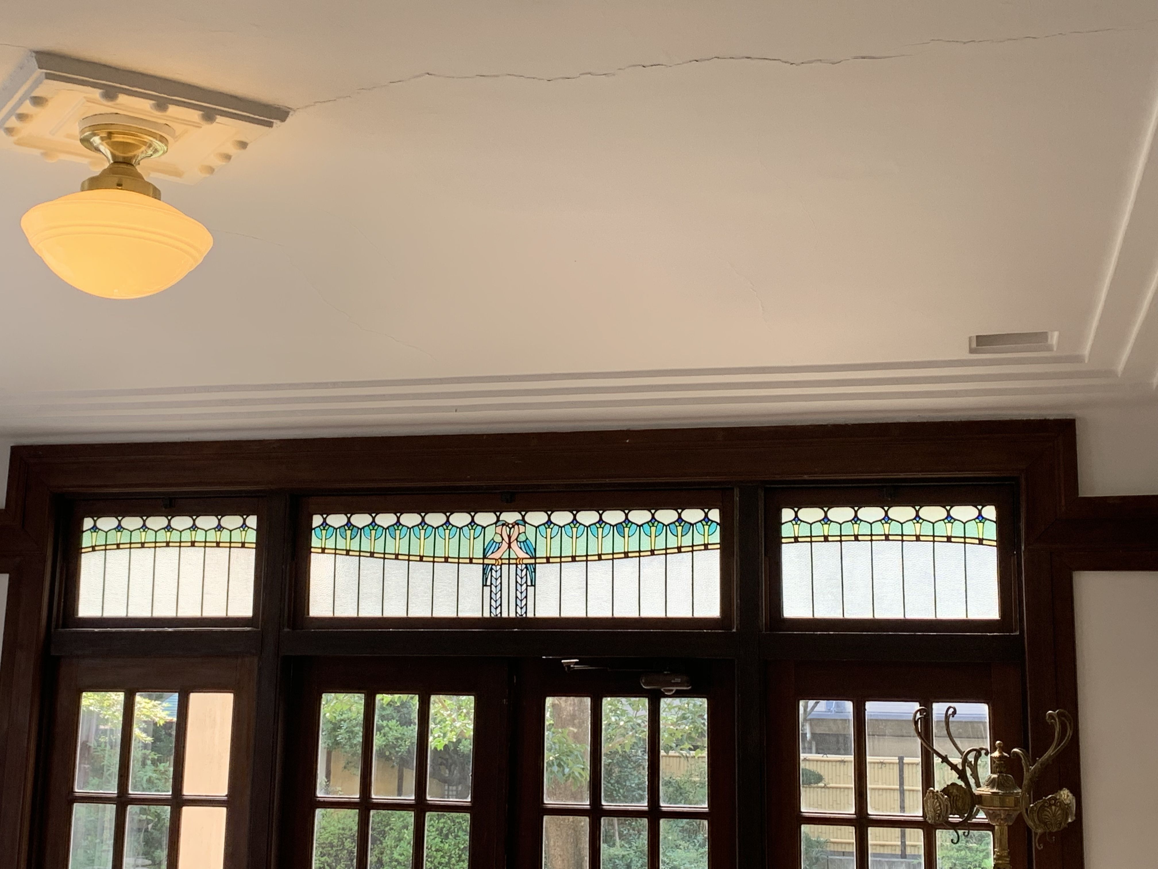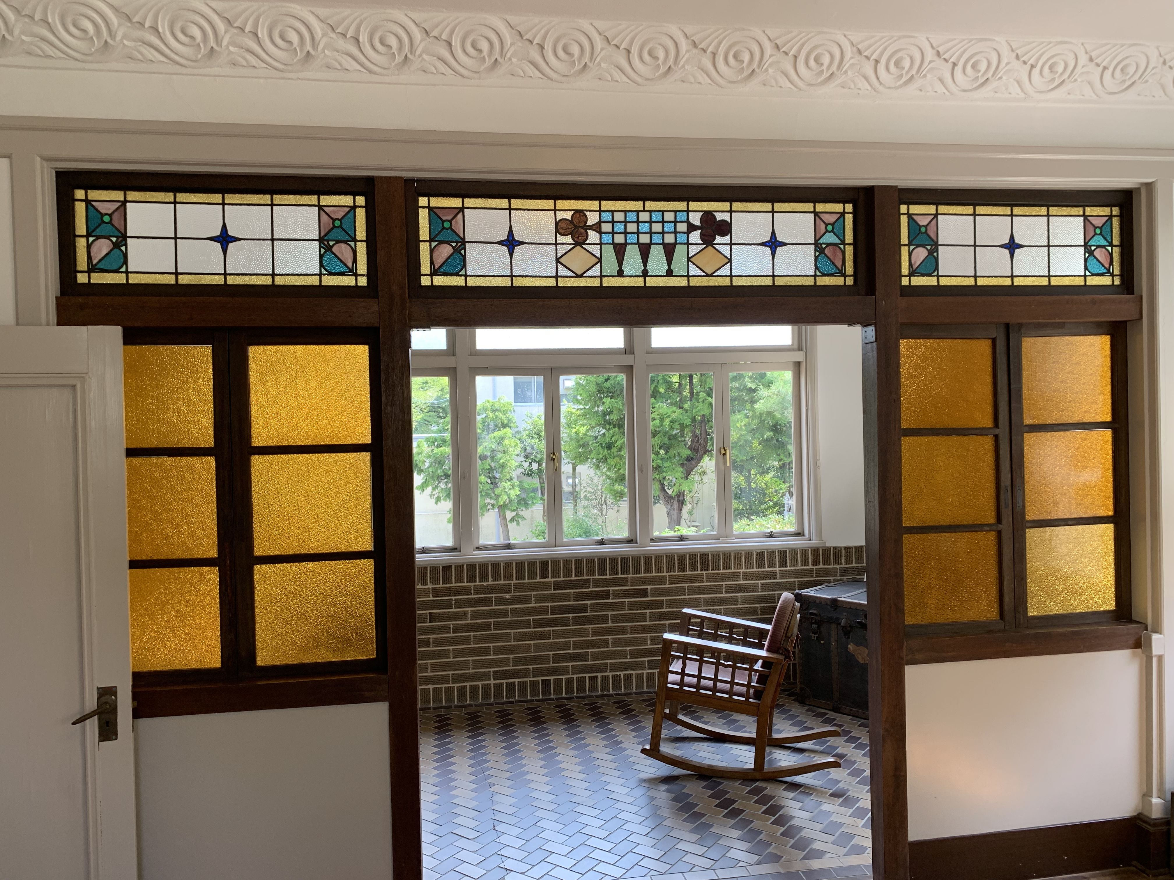 今回は名古屋市東区にある、文化のみち『撞木館(しゅもくかん)』のステンドグラスを紹介します。 ![]() 文化のみち 撞木館は陶磁器商として活躍した井元為三郎が大正末期から昭和初期に建てた邸宅で、敷地に和館、洋館、蔵、茶室、庭園が残されており、現在は名古屋市有形文化財・景観重要建造物に指定されています。 ![]() ステンドグラスは洋館の中の旧応接室(現在は喫茶室)や玄関ホールなどで観る事ができます。 玄関ホール シンプルで飽きの来ないデザインのステンドグラスです。 ドアに入っているデザインがステキです。 ![]() 応接室 近くで見ると二羽の鳥がデザインされています。 ![]() ![]() お手洗い ![]() 二階の洋間 ![]() ステンドグラスがたくさん入っていて、見応えのある空間でした。 最寄りの駅は、地下鉄桜通線『高岳』駅から1番出口を出て、徒歩10分。 “文化のみち”には前回紹介をした名古屋市市政資料館をはじめ、たくさんのステンドグラスを観ることが出来ます。 お時間がある方は是非、“ 文化のみち ” を散策してみてはいかがでしょう? 詳しくはこちら 文化の道 ステンドグラス工房かわもとのホームページはこちら ステンドグラス工房かわもとのネットショップはこちら