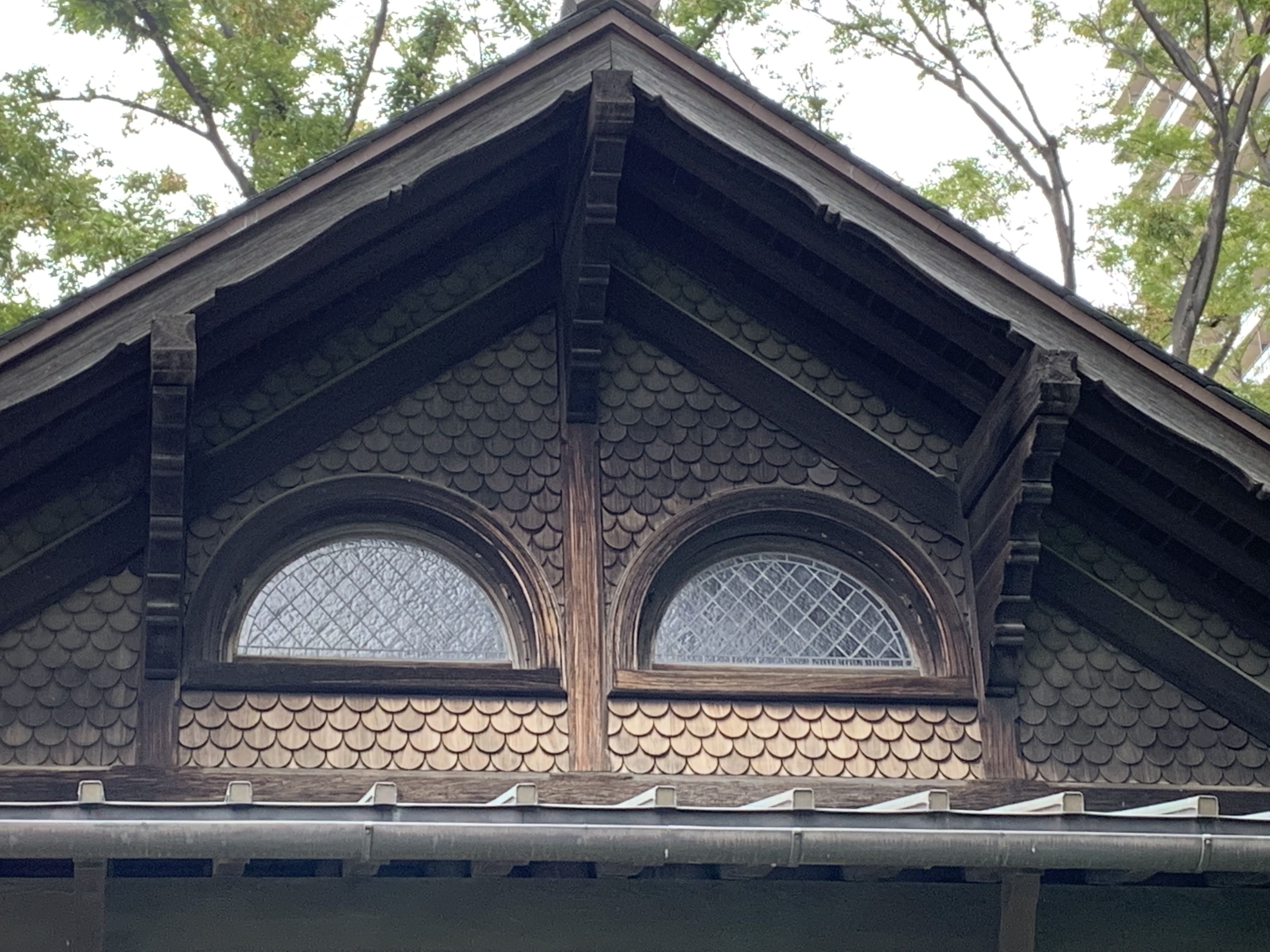 新年初の【ステンドグラスを巡る旅】は東京都台東区にある洋館、『 旧岩崎邸庭園 』のステンドグラスを紹介します。 ![]() 訪れたのは昨年の10月の日曜。 まだ外装工事の最中で足場が組んでありました😢 (工事は2019年12月に終わっています) 先日アップされたみえ先生のブログ記事、 『ステンドグラスの遠足 あれこれ』の中でも何枚か写真が使われています。 以前に訪れた事がある、ゆい先生は『私、好きだなぁ』 これは行くしかない! “ 日曜は邸内の撮影は禁止、しかも足場がある ”と観る価値半減? でも充分満喫できました😊 ![]() ![]() ステンドグラスは正面玄関と2階への大階段の所、洋館と和館への境。勝手口とでも言うのでしょうか? こちら数カ所に入っています。 ![]() (今回は日曜でしたので玄関口のみしか写真に撮れませんでした🙇♂️) ![]() ![]() そして離れにある撞球場(どうきゅうじょう=ビリヤード場) ![]() ![]() ![]() 屋根の下の窓、玄関に入っています。 どれもシンプルですが、ステキ✨です。 ゆい先生が気に入ったのが、分かりました。 旧岩崎家住宅は三菱を創始した岩崎彌太郎の子、久彌がこの地に洋館と和風住宅を中心とする私邸を建設しました。 現存する洋館と撞球場はジョサイア・コンドルが設計。イギリス17世紀初頭のジャコビアン様式を基調としたようです。 洋館の背面に連接する和風建築は大河喜十郎施工の寄棟造、桟瓦葺の和風住宅となっています。 今回は日曜で内部の写真が撮れなかったので次回は平日に訪れてみたいたと考えています。 次は内部のステンドグラスを紹介しますので、お楽しみに! 待ちきれない方は、ご自分の目で。 最寄り駅は東京メトロ千代田線 湯島駅 徒歩3分です。 あけましておめでとうとございます。 今年も各地にあるステンドグラス、身近にあるステンドグラス、たくさん紹介していきますね。 1人でも多くの方にステンドグラスを好きになって貰えるように、興味を持って頂けるように、頑張っていきたいと思っています。 スマホが壊れ、滞っていた『ドイツ旅行記』の続きもアップしていこうと思います。 本年も『ステンドグラス工房 かわもと』を宜しくお願い致します🙇♂️ ![]() ステンドグラス工房かわもとのホームページはこちら ステンドグラス工房かわもとのネットショップはこちら