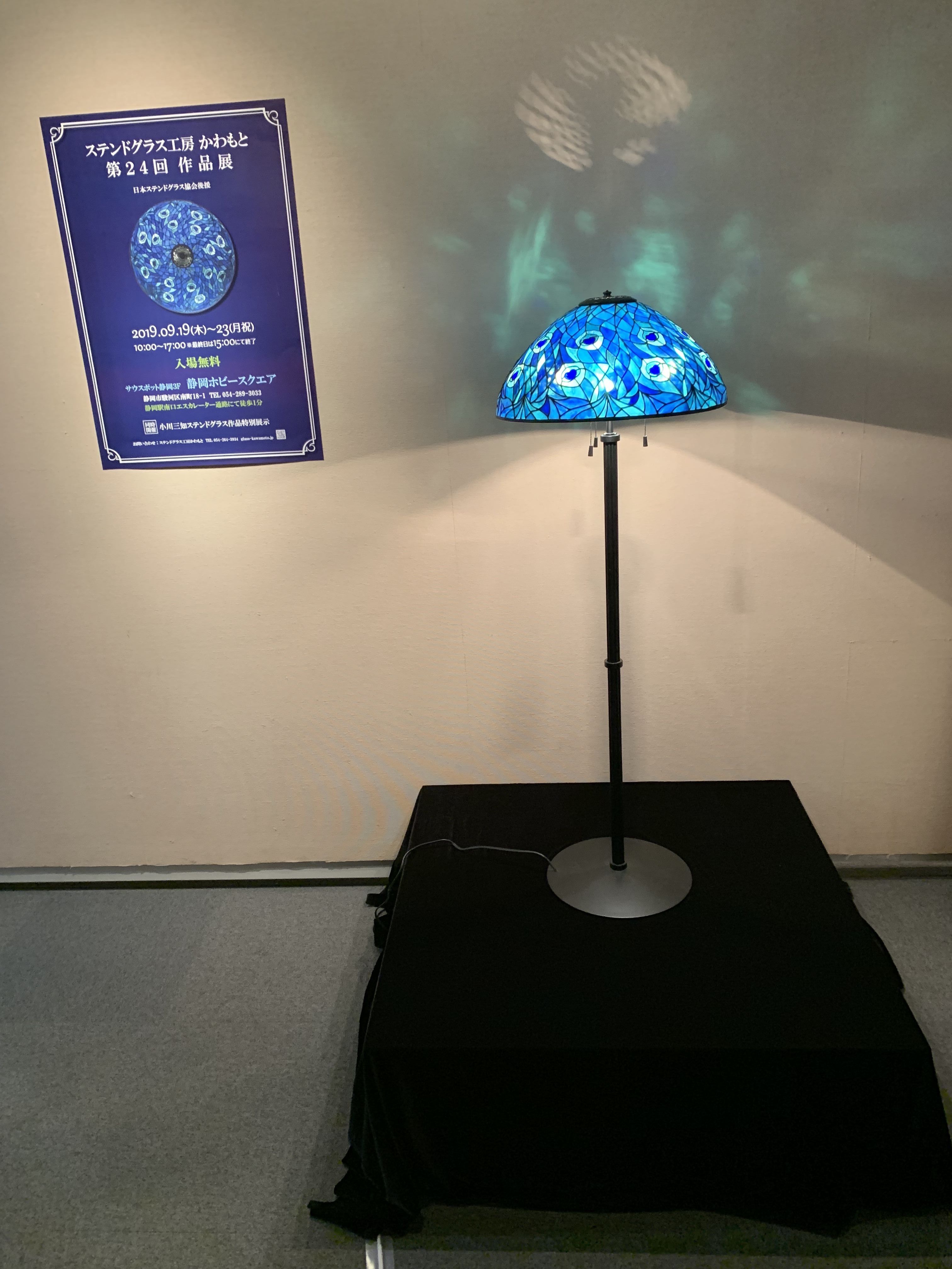 『緊急事態宣言』は今月末まで延期されるようです😢 GW、“不要不急の外出”を避け、自宅で過ごされている方も多いかと思います。 インストラクターも『ステイホーム』 かわもと工房は4月17日より休業中ですので、自宅で作品の制作を進めています👍 今回は昨年度の『ステンドグラス工房かわもと 作品展』でグッドポスター賞を受賞したインストラクター、稲葉さんの作品を紹介します。 今回完成した作品はこちら、 ![]() ティファニーランプのレプリカ・ピオニーテント。 ランプシェードが10インチのフロアランプです。 ガラスは花びらや葉っぱはアメリカ・ヤカゲニー社、バックはドイツ・ランバーツ社のものを使用しています。 花びらの白からピンクに変わるグラデーションにこだわって、制作したそうです。 ![]() “ドイツ・ランバーツ社のガラスはアンティーク技法による手作りのため高価である”と以前のブログでもお話しましたが、手作りが故に2色以上入るガラスでは同じ色合いのものは存在せず、作り手のセンス(ガラスのこの部分を使おうという、作者のこだわり)が発揮されます。 アメリカ・ヤカゲニー社のガラスも手流しのアートグラスなので、同様に同じガラスは存在しません。 花びらや葉の葉脈として使える色合いやテクスチャーのガラスが多数あり、ガラス選びも作家の手腕の見せ所になります。 制作期間は2ヶ月。早い😱 自分なら1年以上掛かりそうです😅 ベースは先生が薦めてくれたものを使用したそうですが、ランプシェードと合っていて、とてもステキ✨です。 シェードのガラス選びも大切ですが、ベースも含めて ひとつの作品になりますので、ご覧になる時には是非一緒にベースも観て下さいね。 作品は今秋に開催される予定の 『ステンドグラス工房かわもと 第25回作品展』に出展されるそうです。 稲葉さん、昨年はこの作品を出展。 ![]() ティファニーランプ・ピーコックです。 冒頭にもお伝えした通り、この作品が見事にグッドポスター賞を受賞しました。 今回完成したピオニーのランプで“ 史上初 ”の2年連続受賞なるか? 他のインストラクターも頑張って作品の制作をしています。 稲葉さんより ボーダーにアンキャット(Uncategorized)のエメラルドグリーン色のガラスを使ってます。 素敵な色ですよ🎵 実際に見て頂きたいです‼️ 作品展が楽しみです😊 ステンドグラス工房かわもとのホームページはこちら ステンドグラス工房かわもとのネットショップはこちら