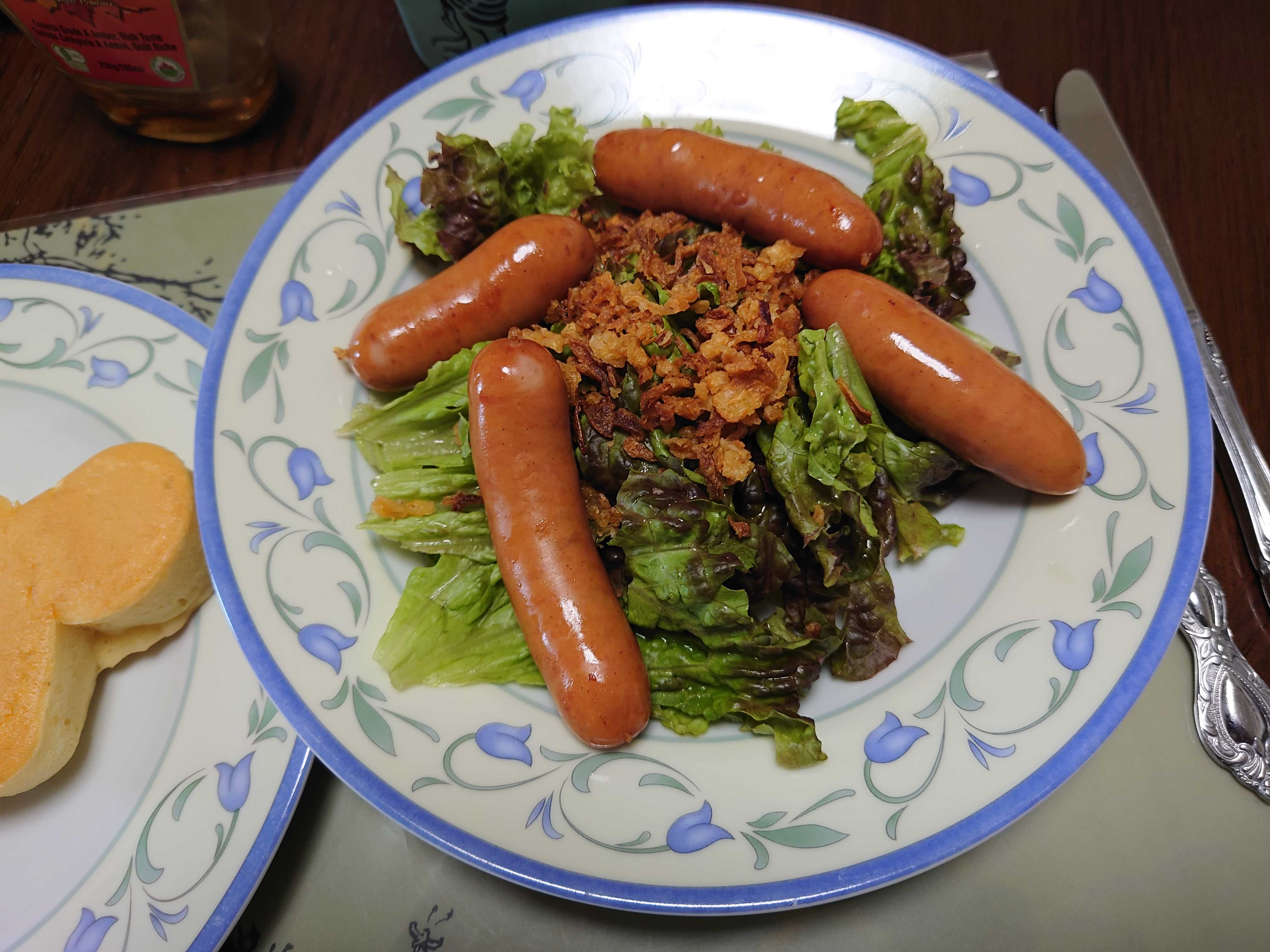 ![]() ![]() ソーセージとサラダ。 ![]() パンケーキ。