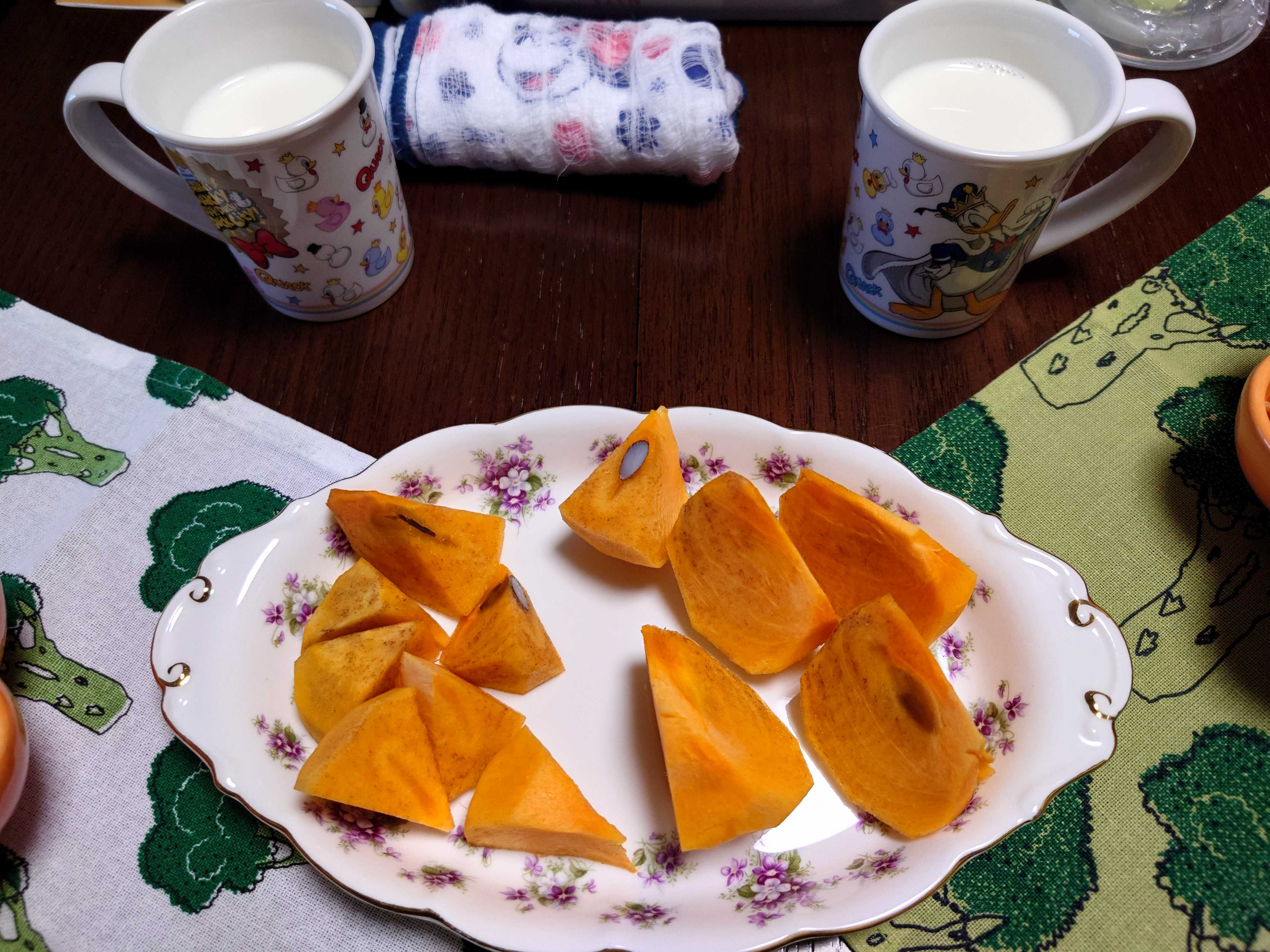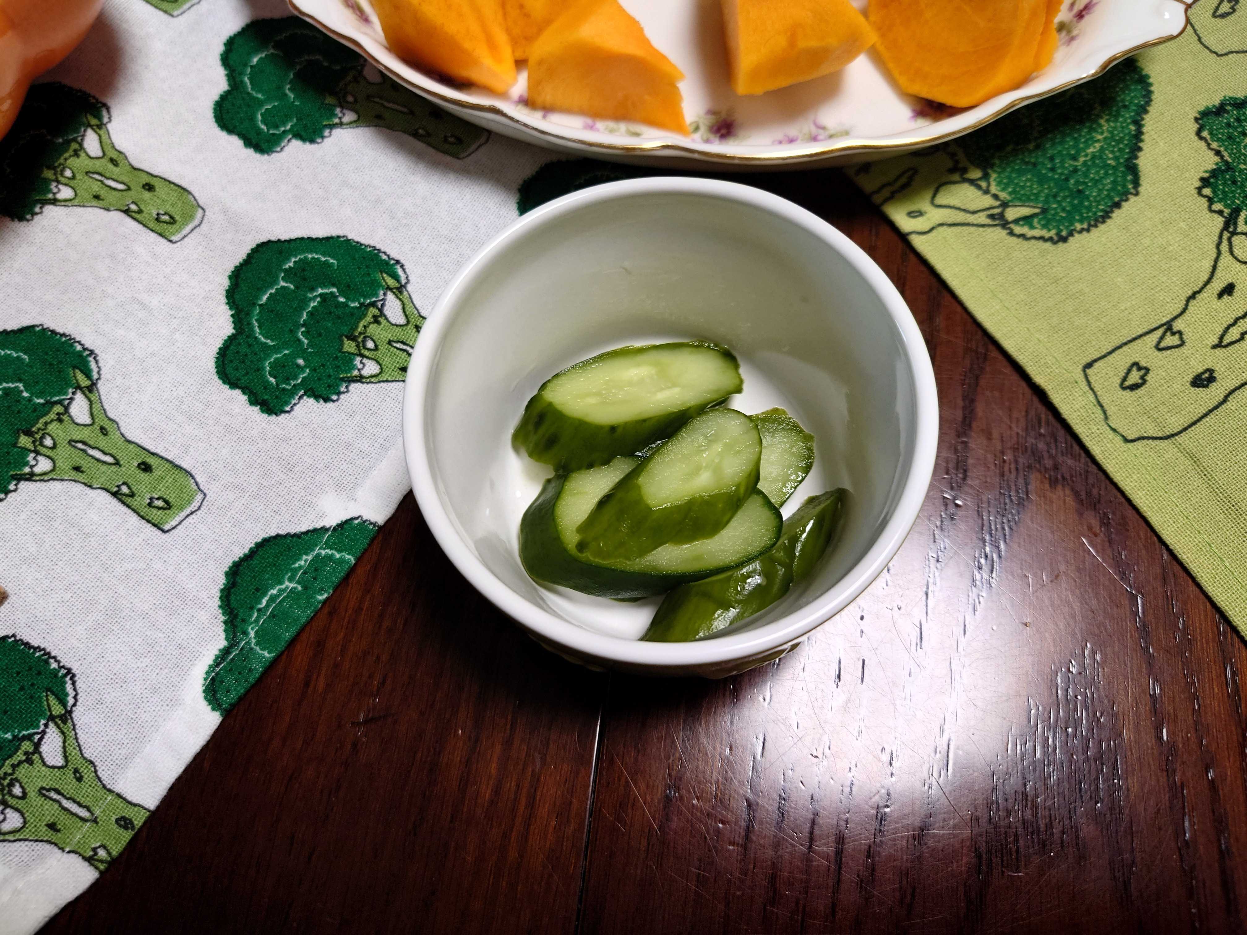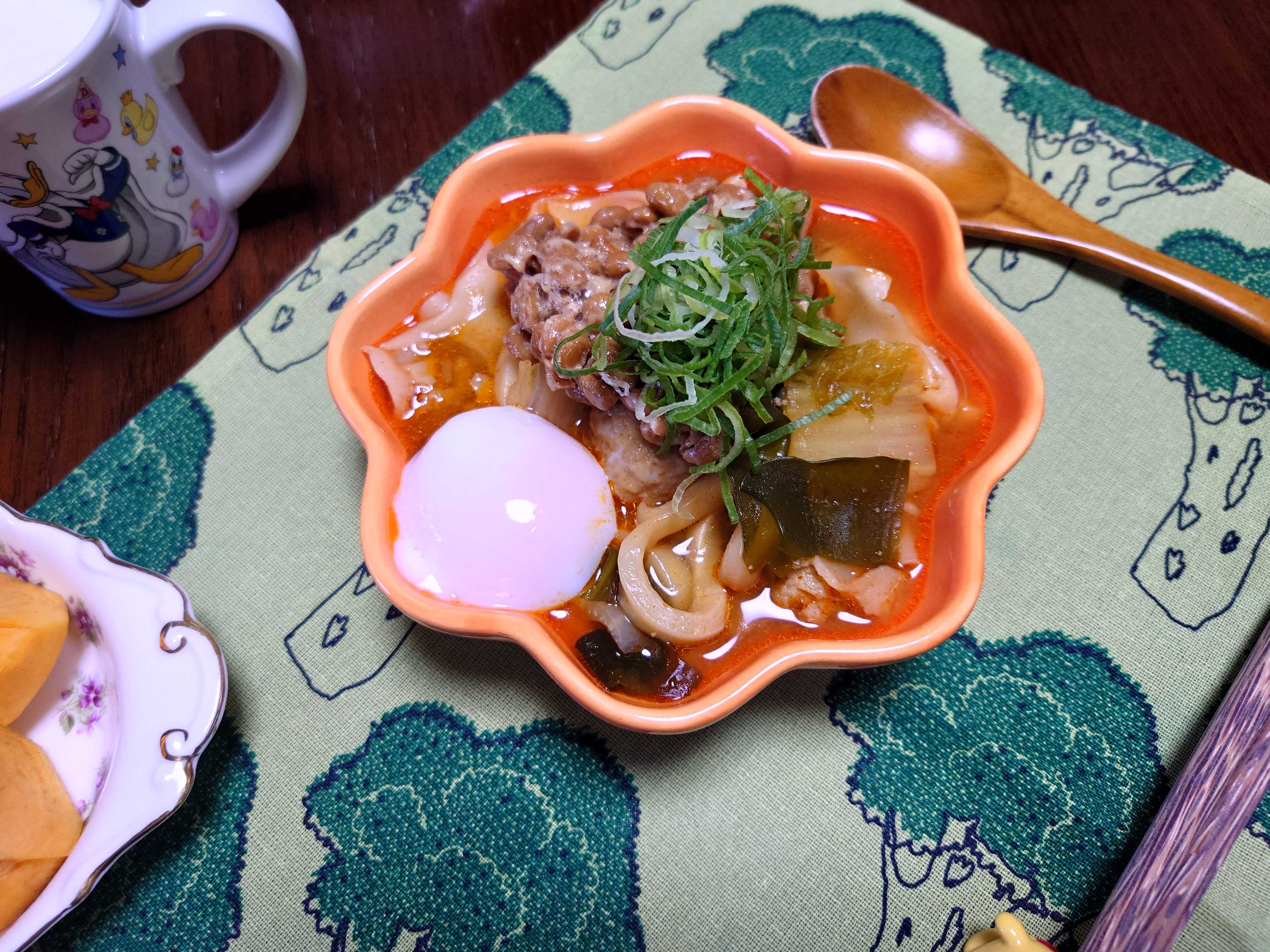 今朝の我が家の朝食は、昨晩の残りの「キムチ鍋」。 ![]() 昨晩の残りのキムチ鍋。納豆、温泉たまご、ワカメ、うどん入り。 ![]() きゅうりの漬け物。 ![]() デザートの柿。