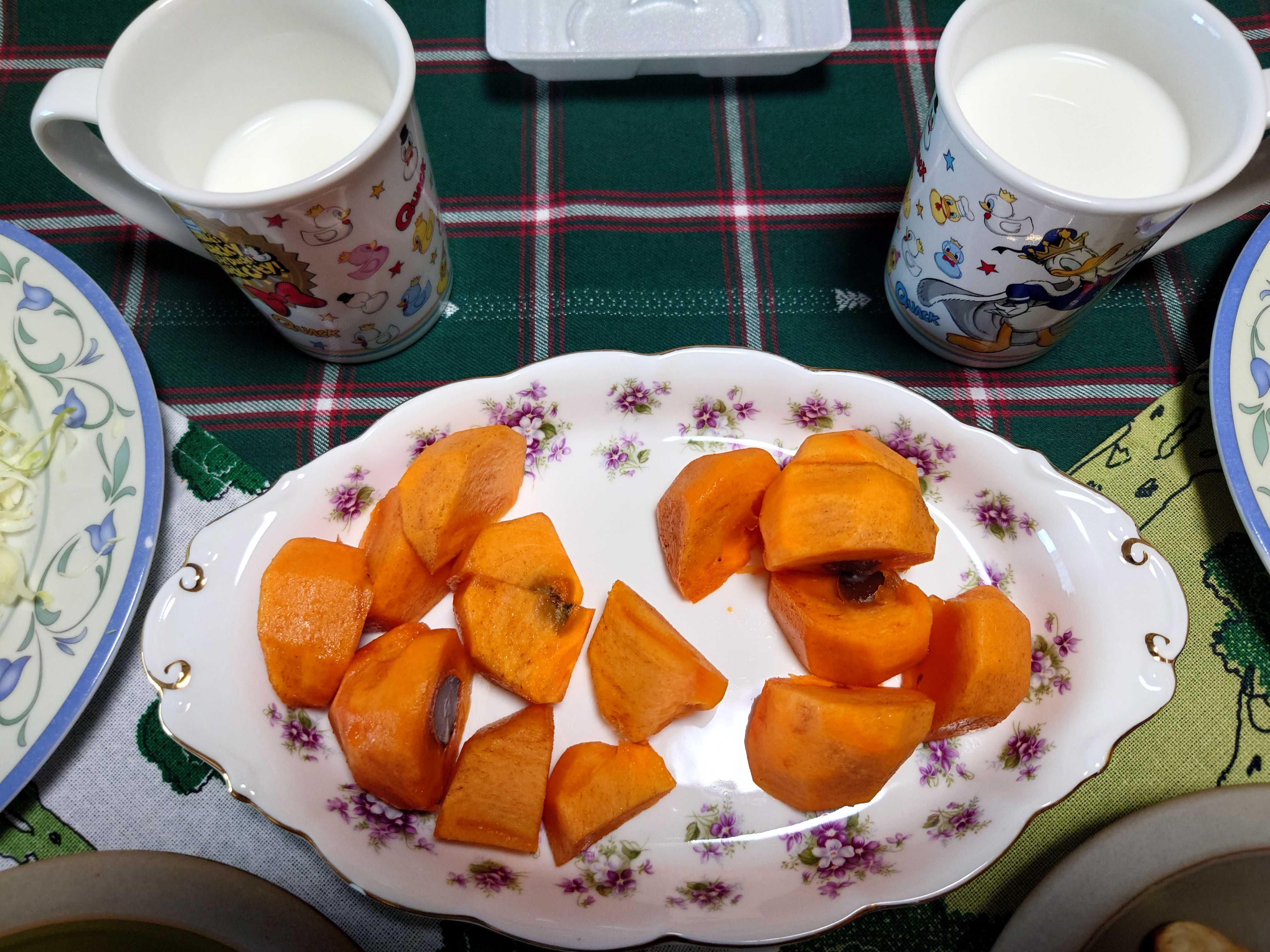 今朝の我が家の朝食は、「贅沢餃子」。 ![]() 贅沢餃子と千切りキャベツ。 ![]() クロワッサンとスコーン。 ![]() 豆腐入り玉ねぎスープ。 ![]() デザートの柿。